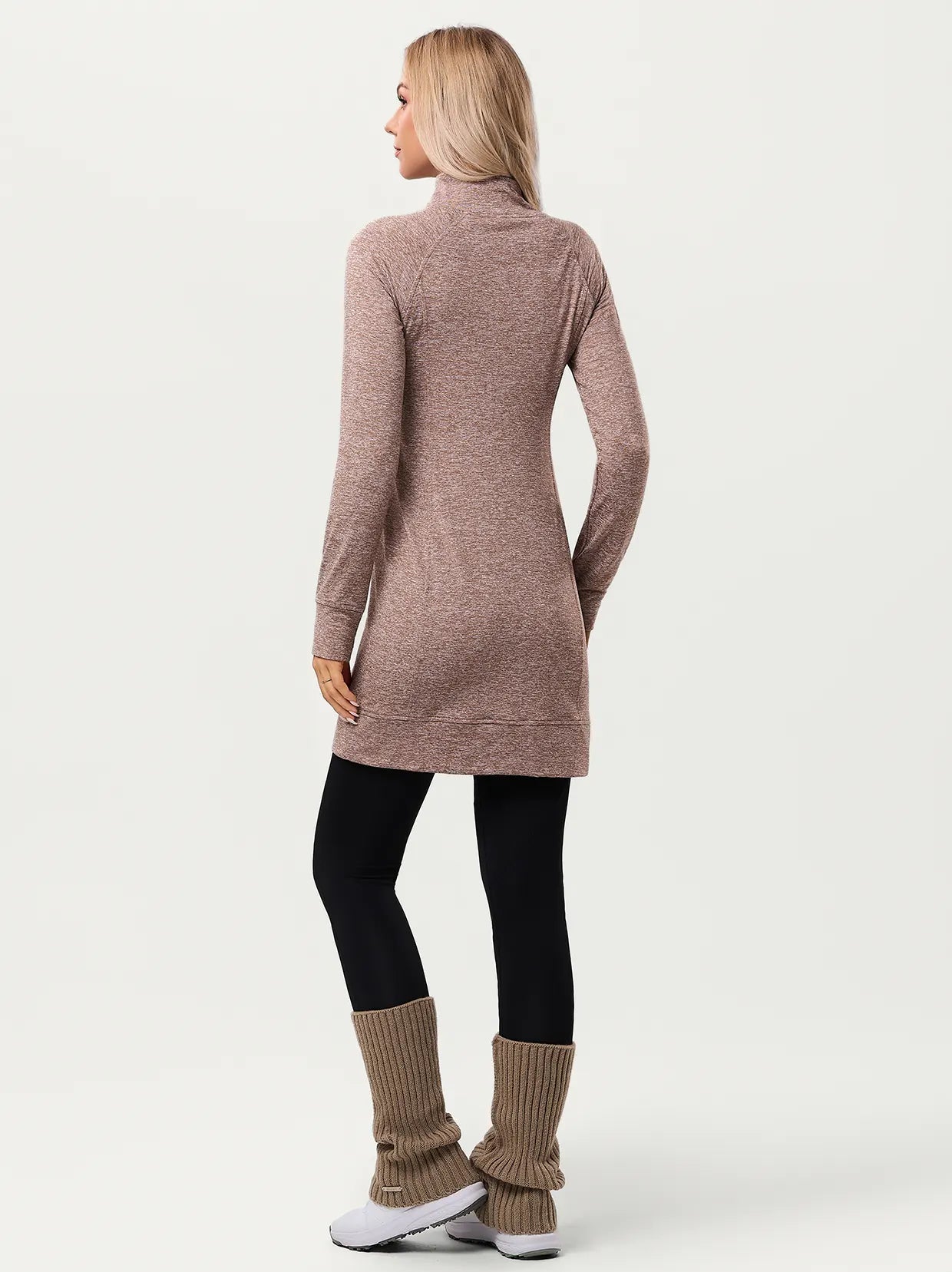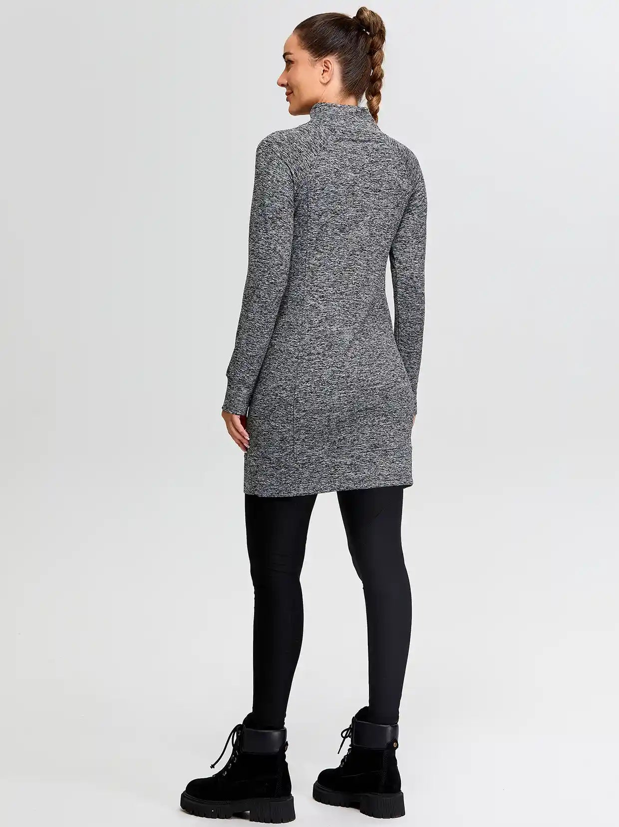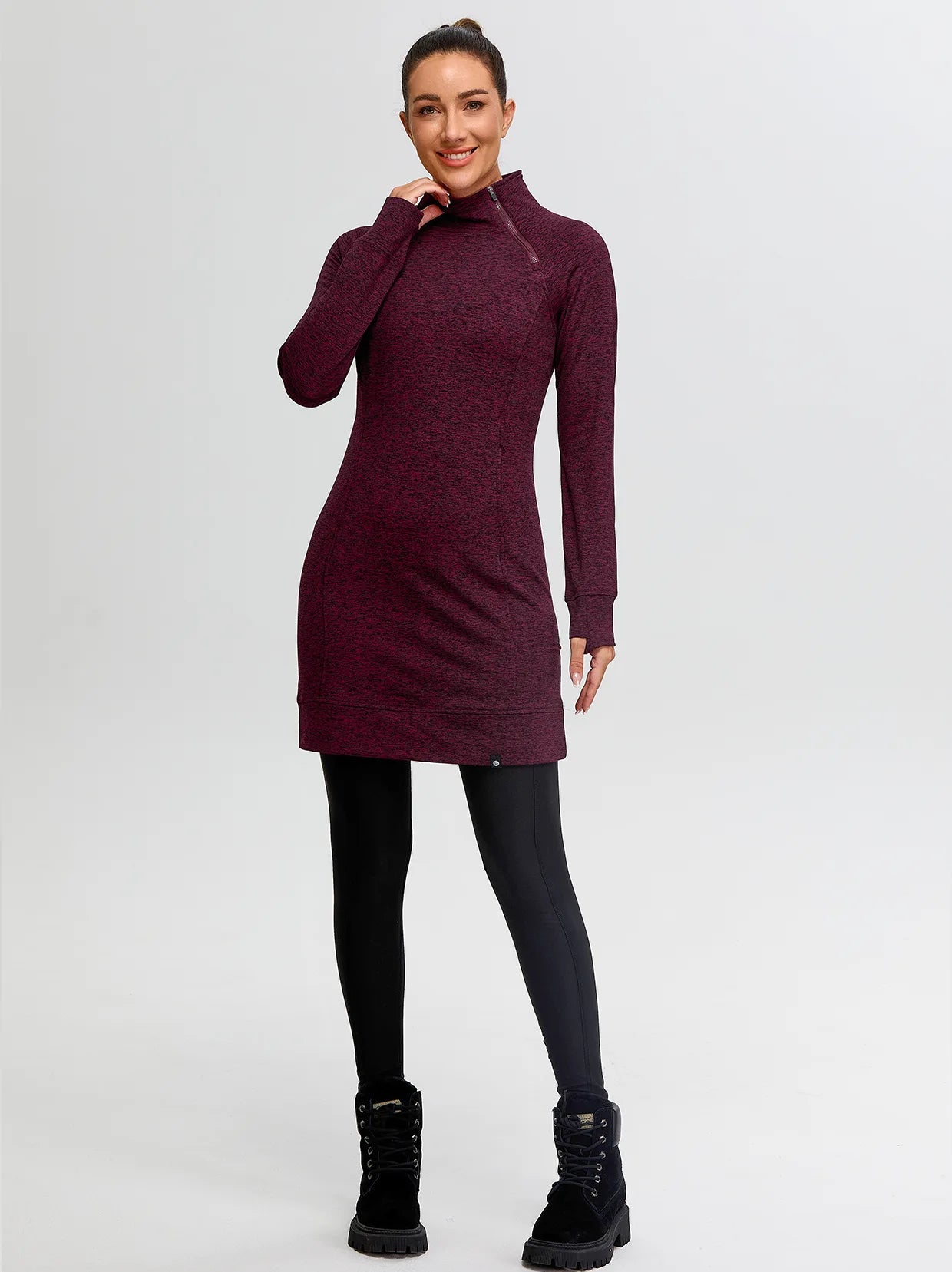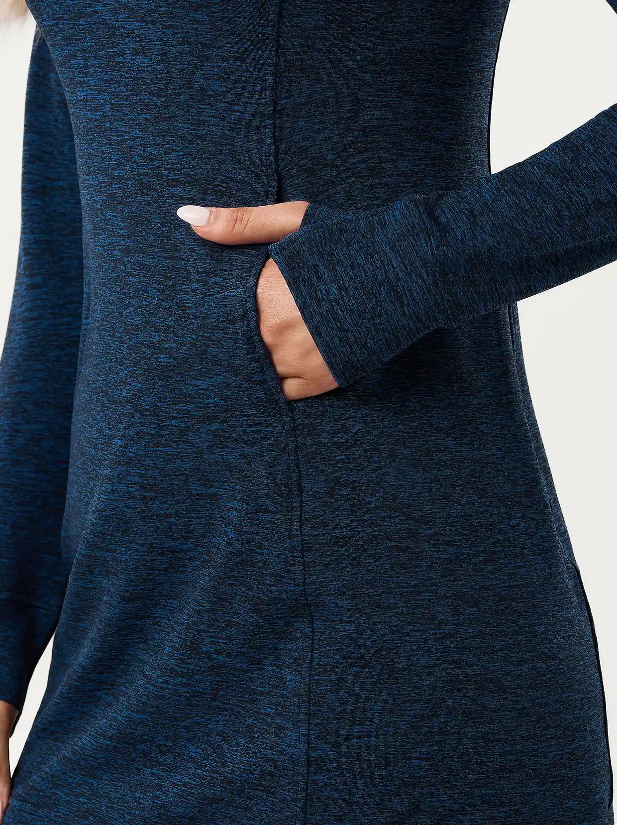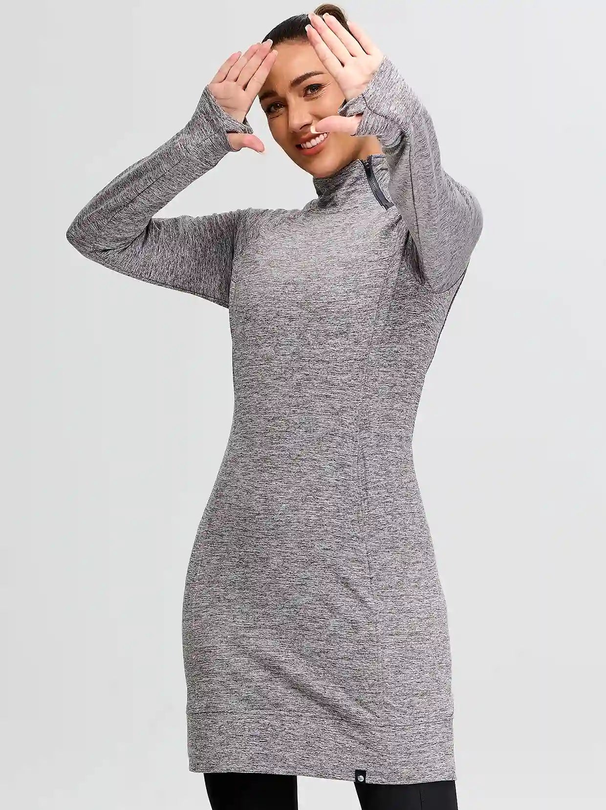 Side-zip 35" Mock Neck Long-sleeve Fleece Dresses