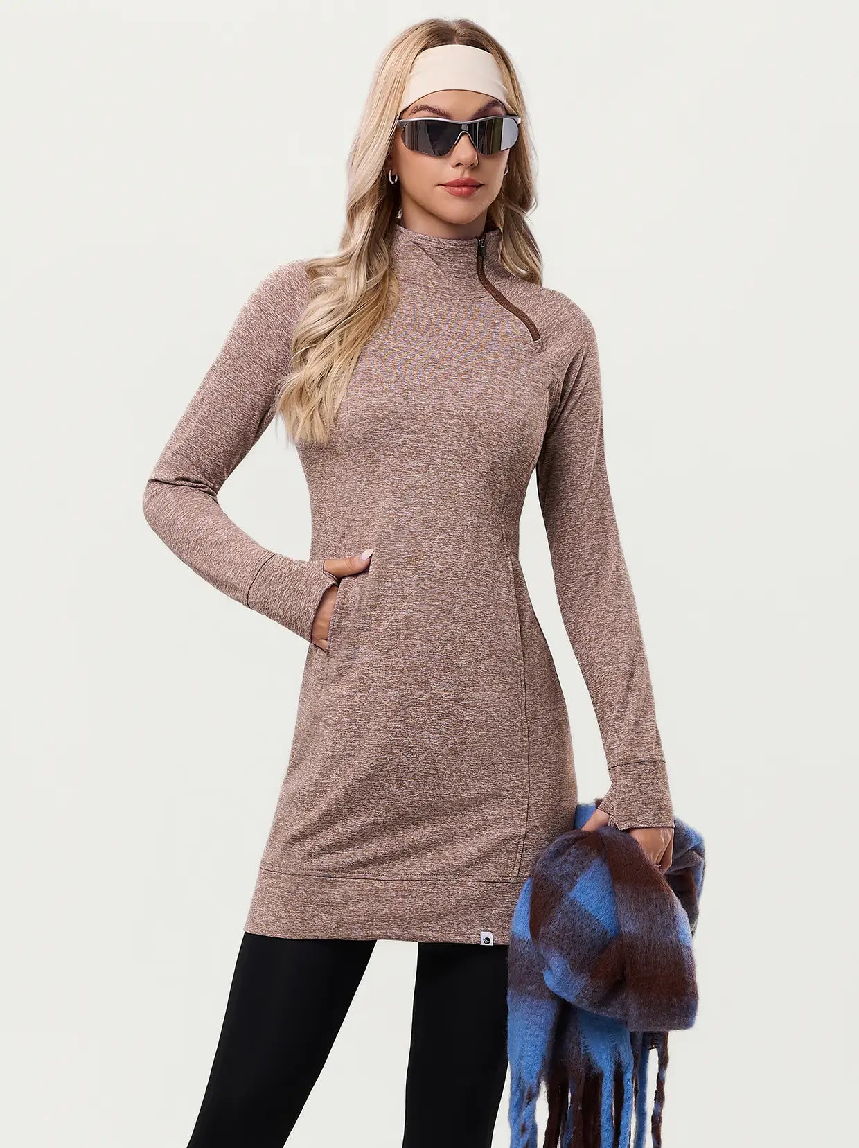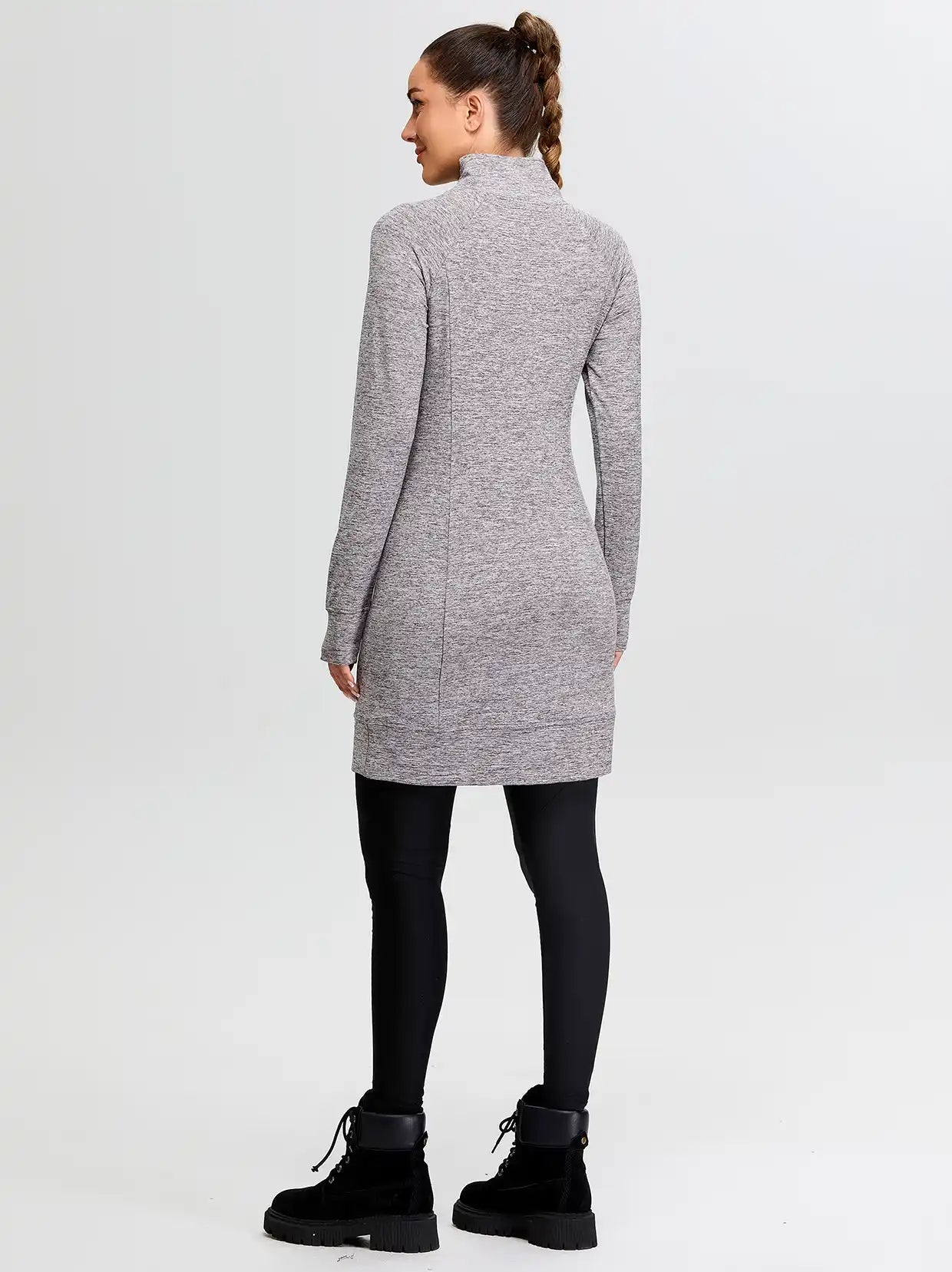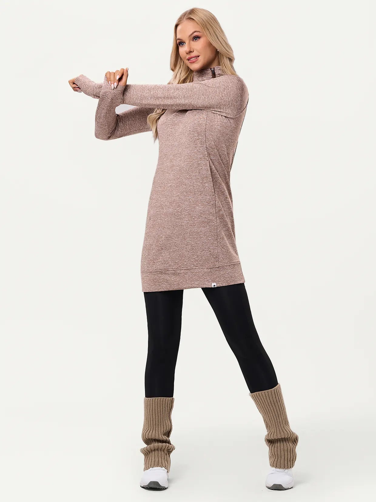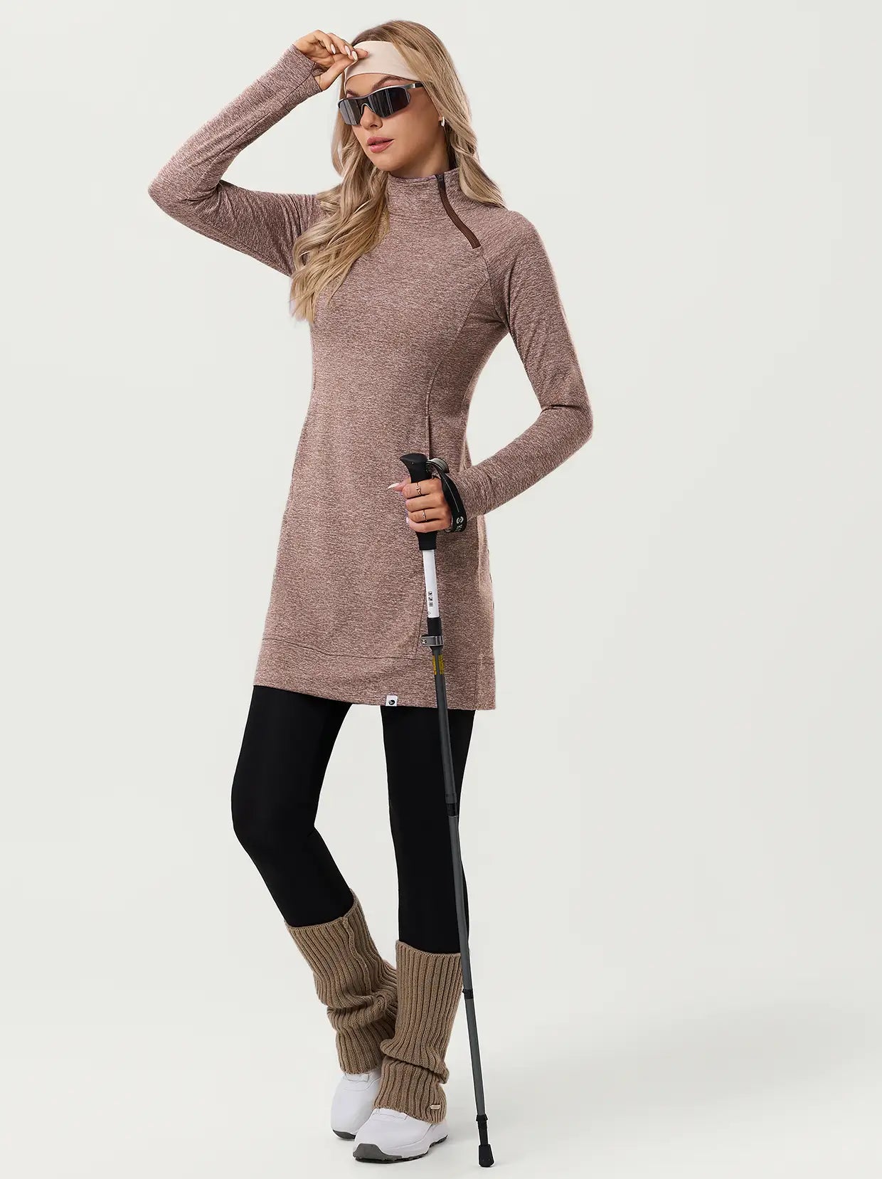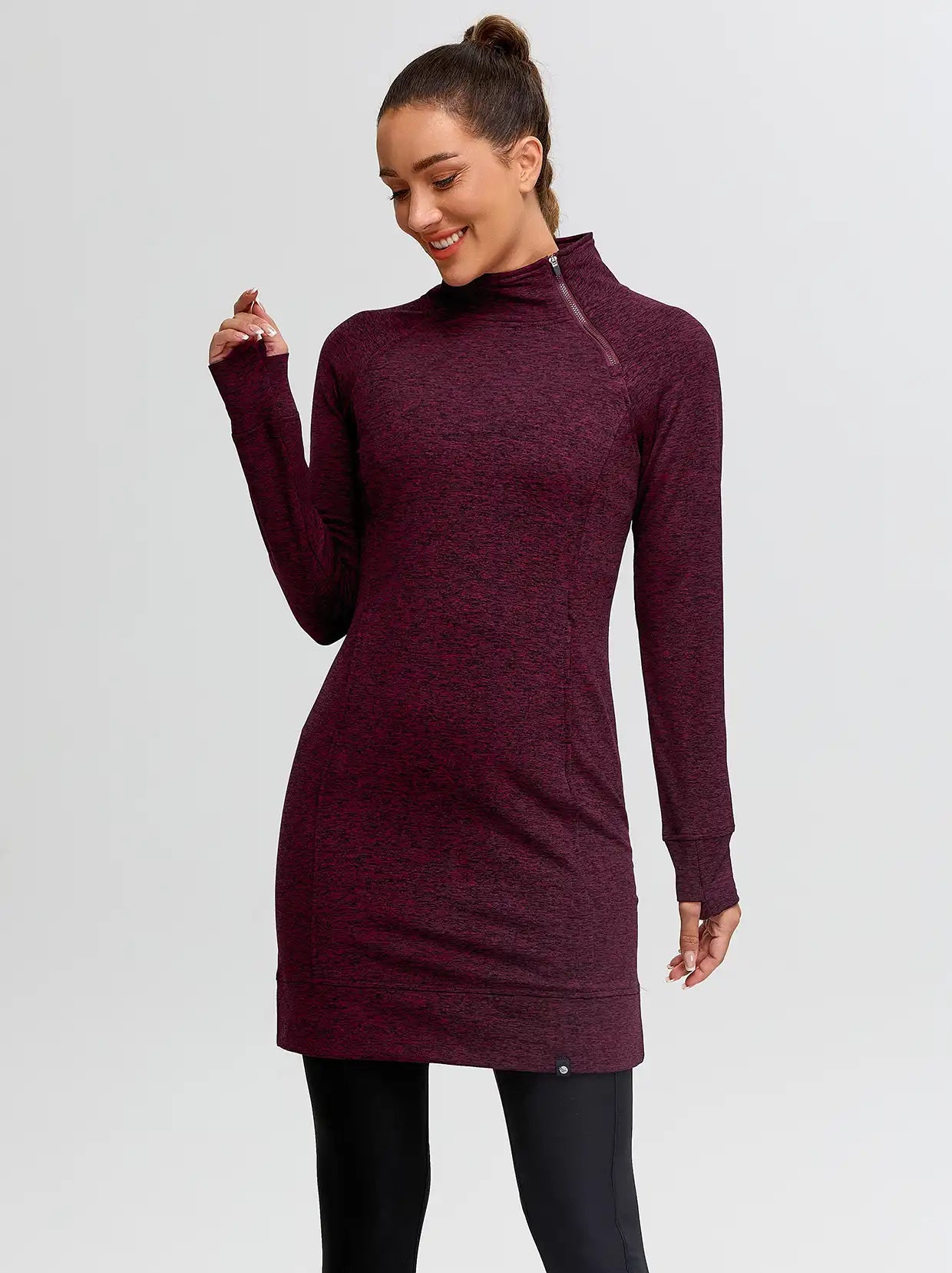 Side-zip 35" Mock Neck Long-sleeve Fleece Dresses
