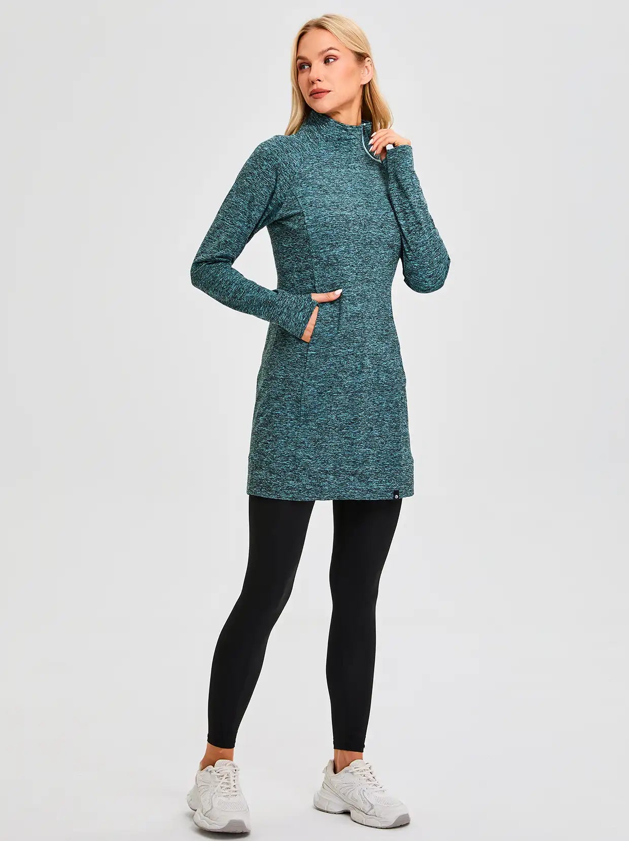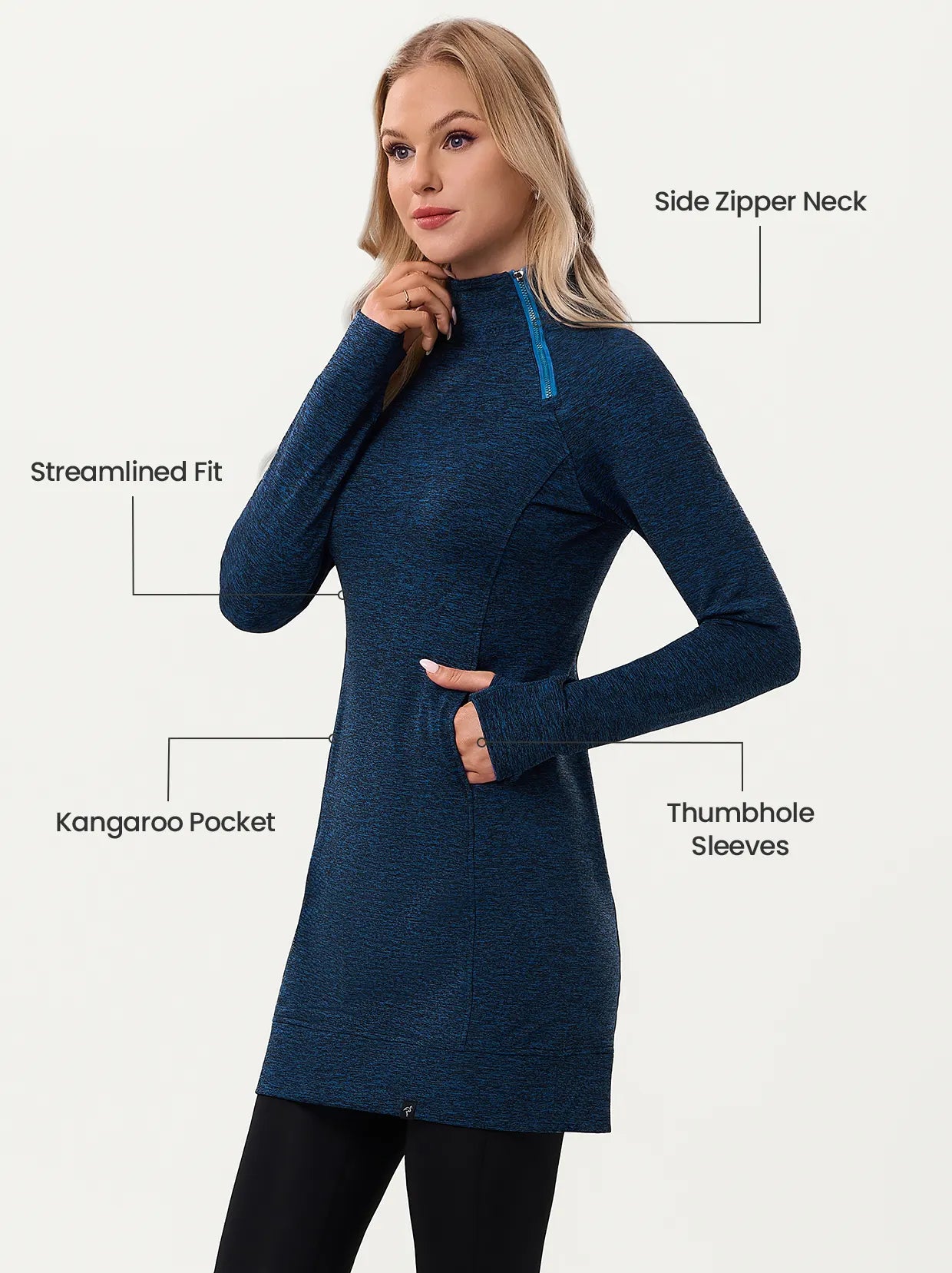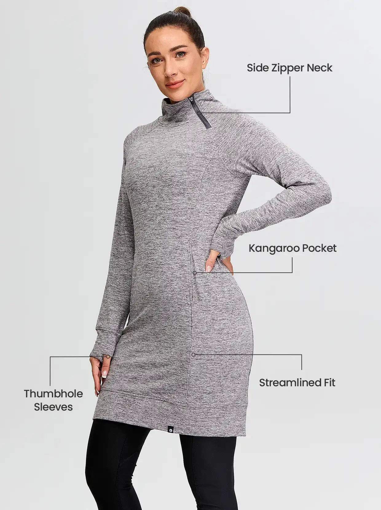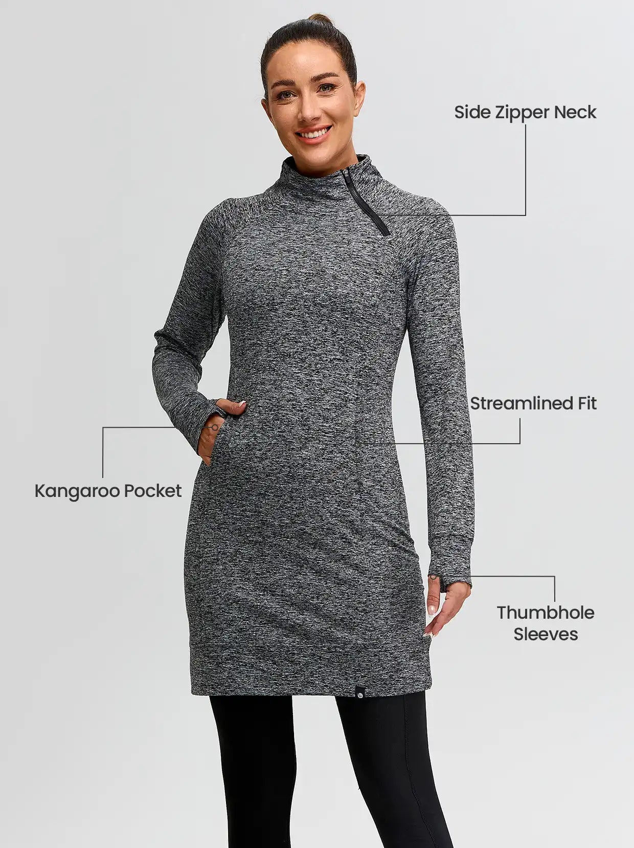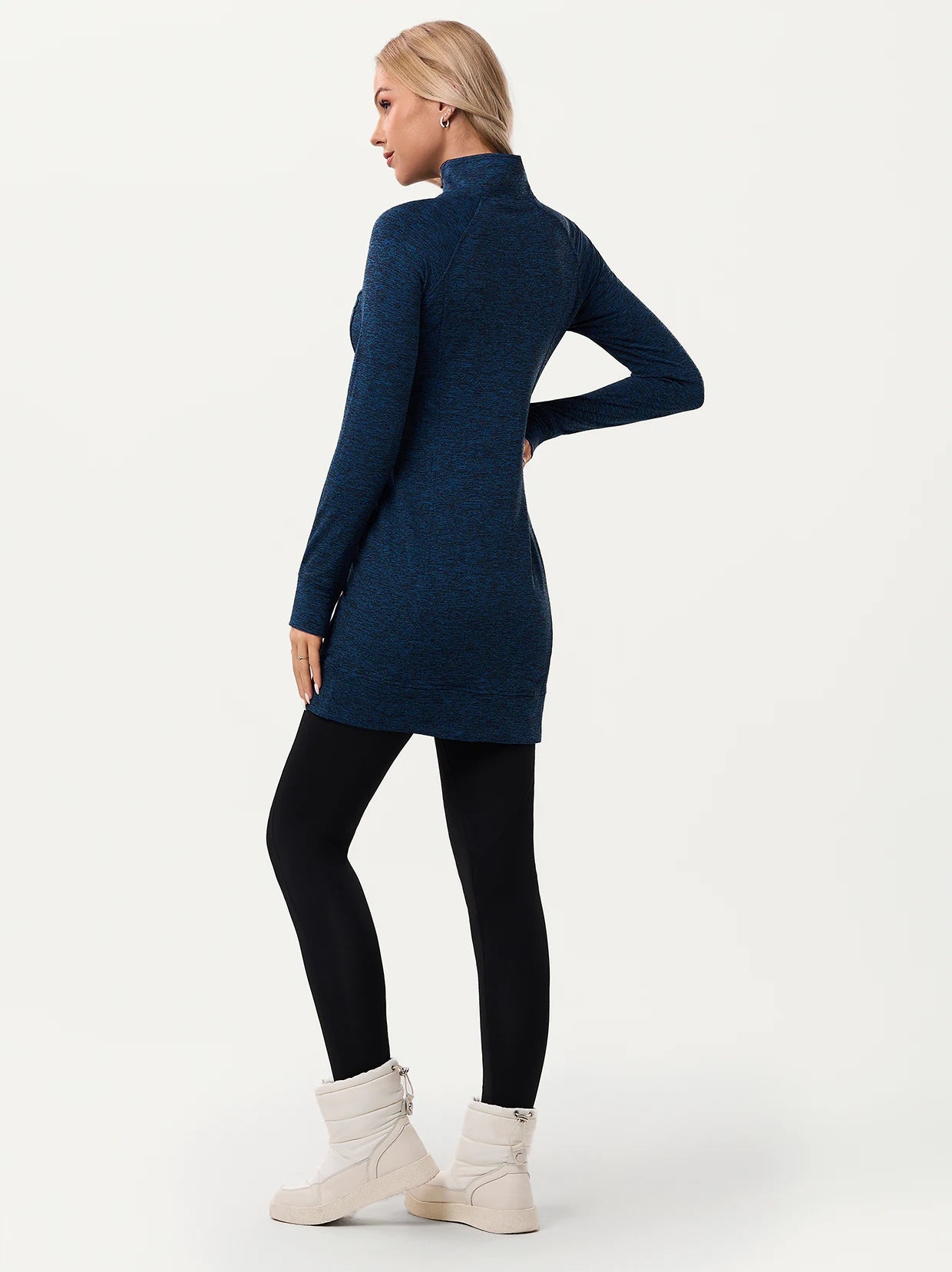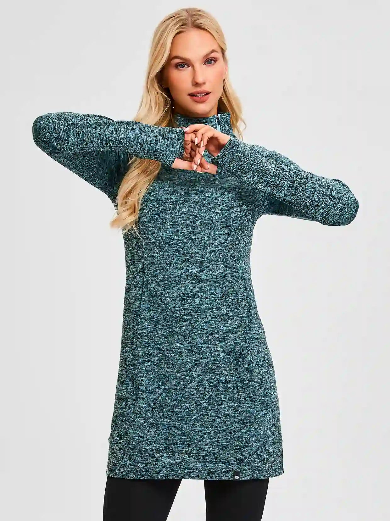 Side-zip 35" Mock Neck Long-sleeve Fleece Dresses