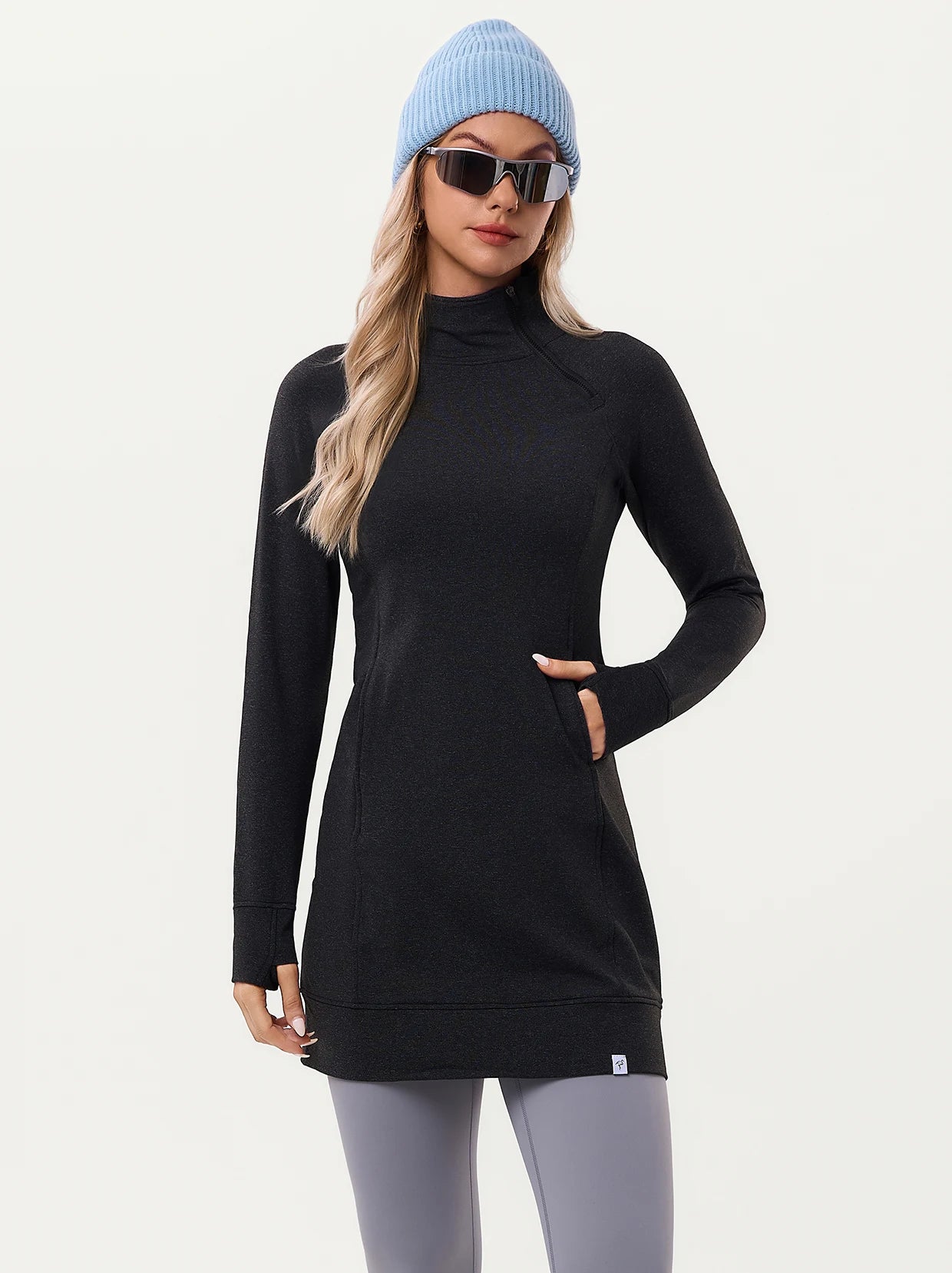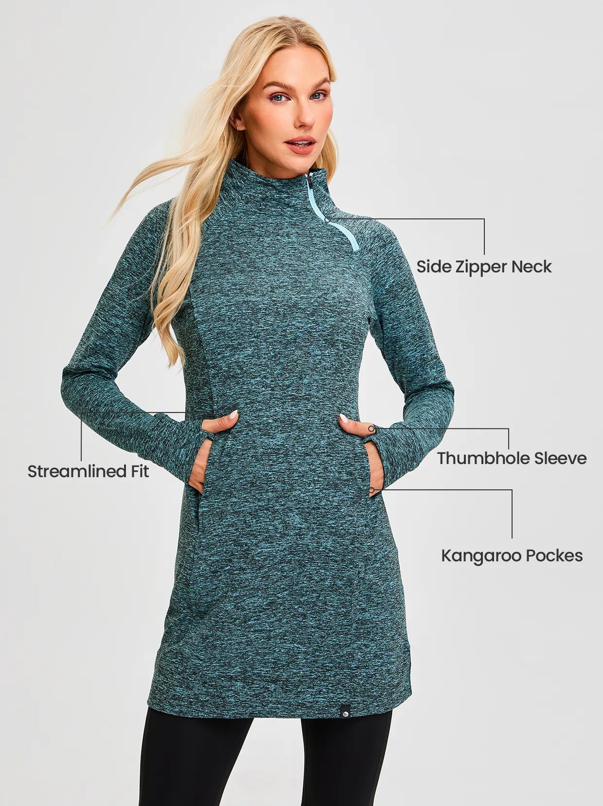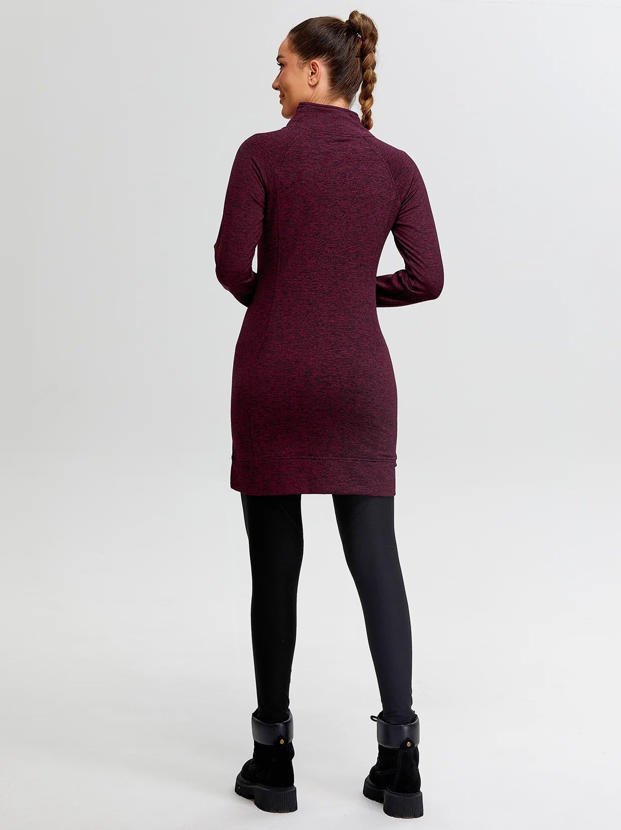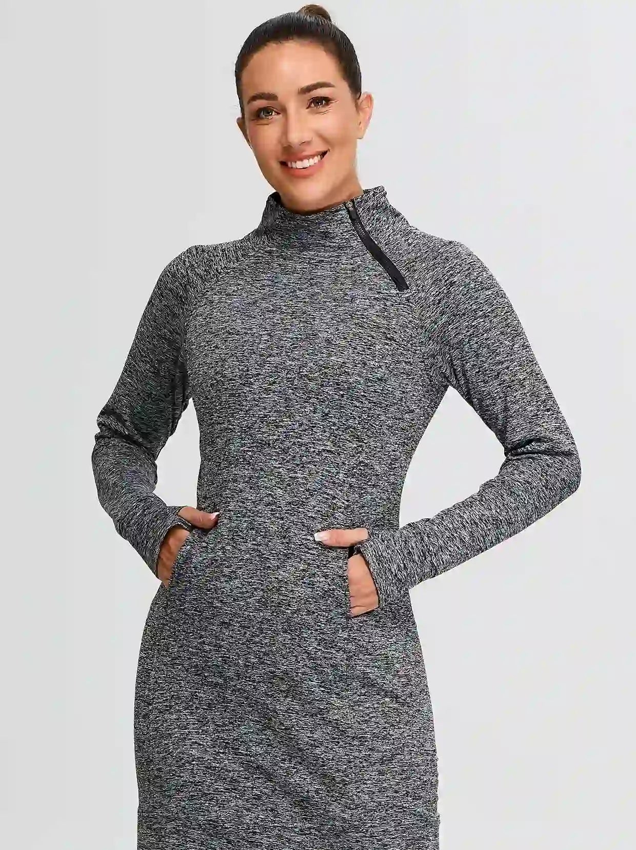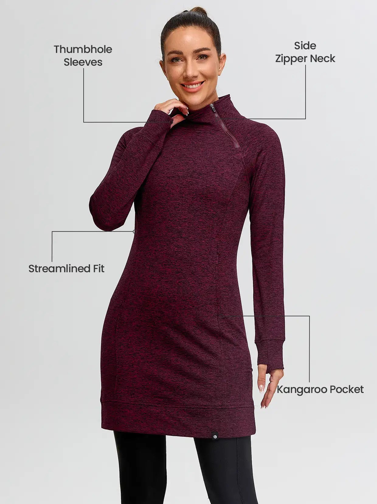 Side-zip 35" Mock Neck Long-sleeve Fleece Dresses