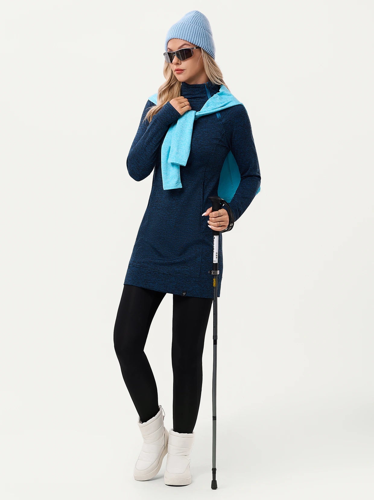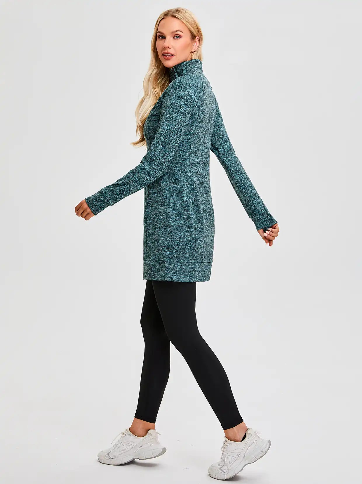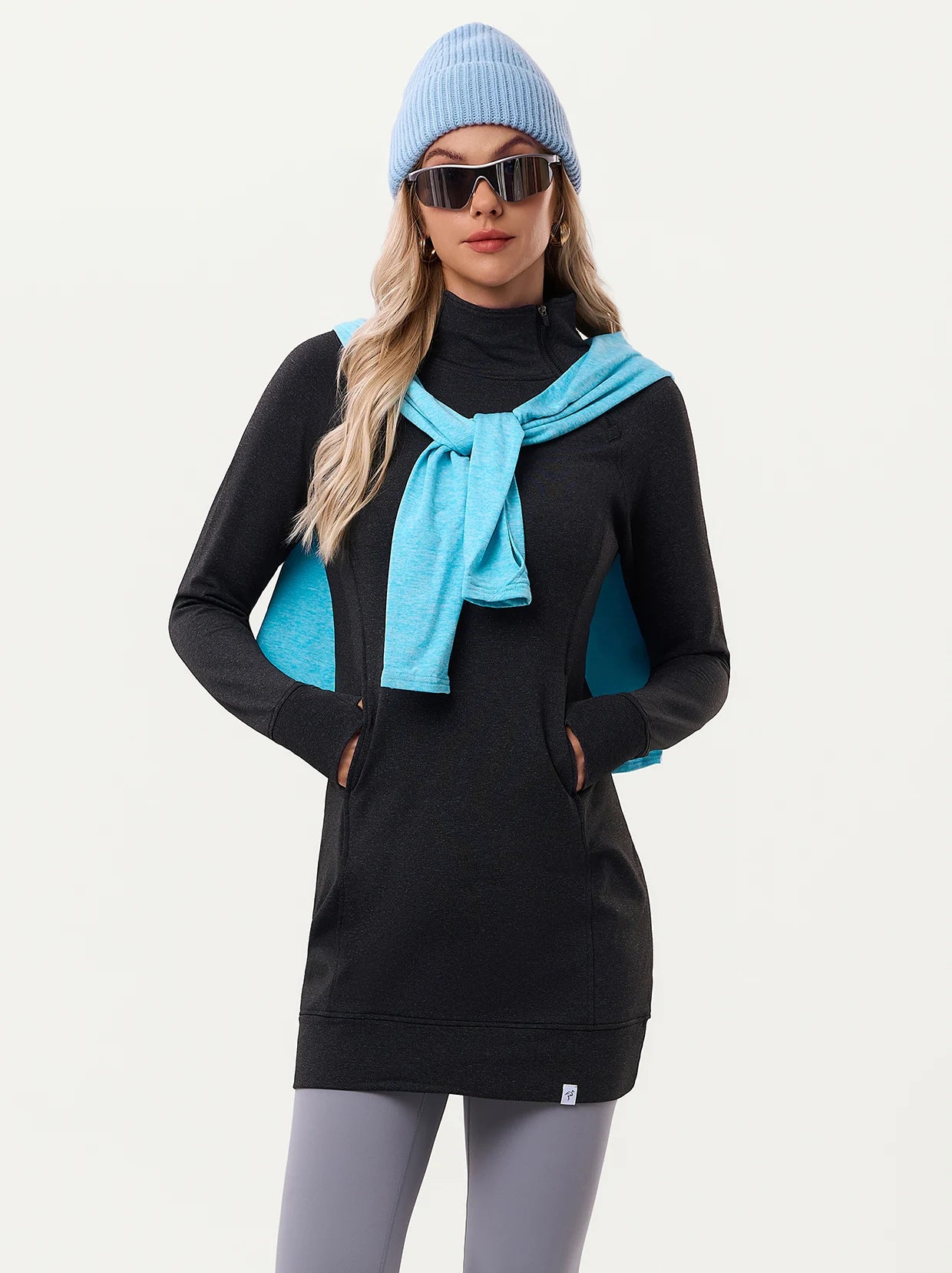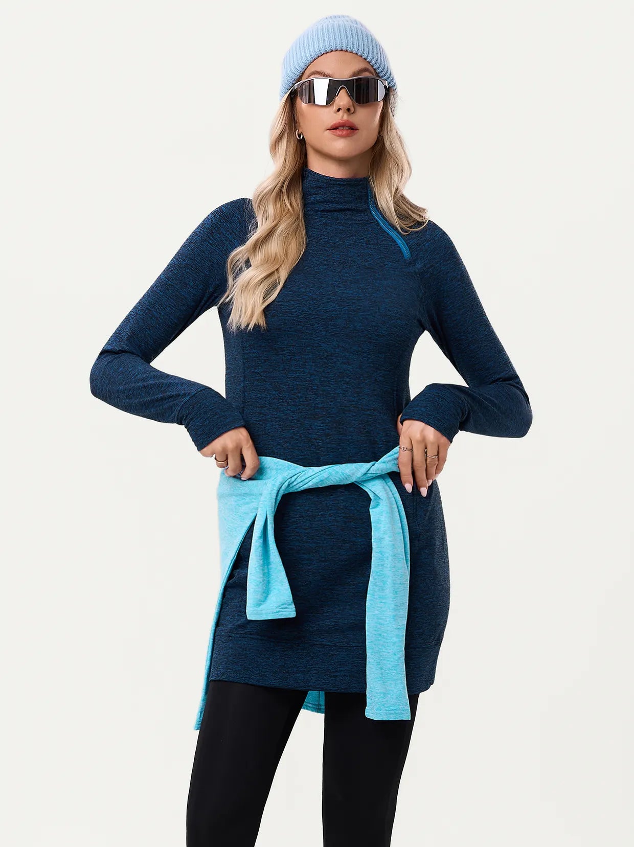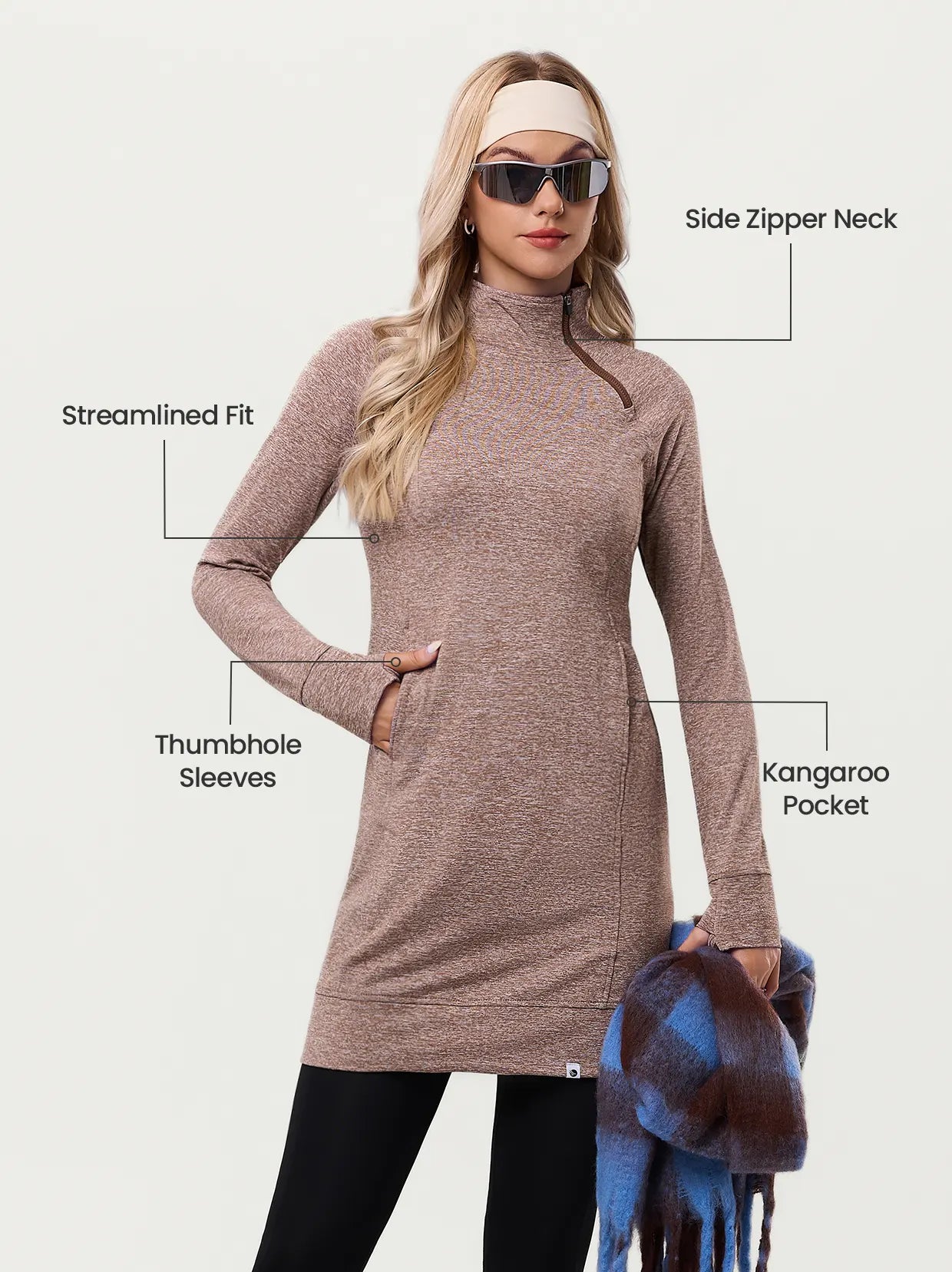 Side-zip 35" Mock Neck Long-sleeve Fleece Dresses