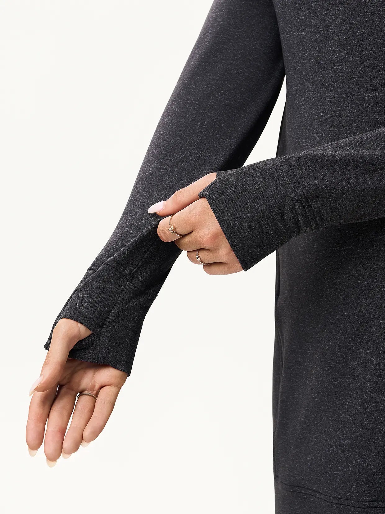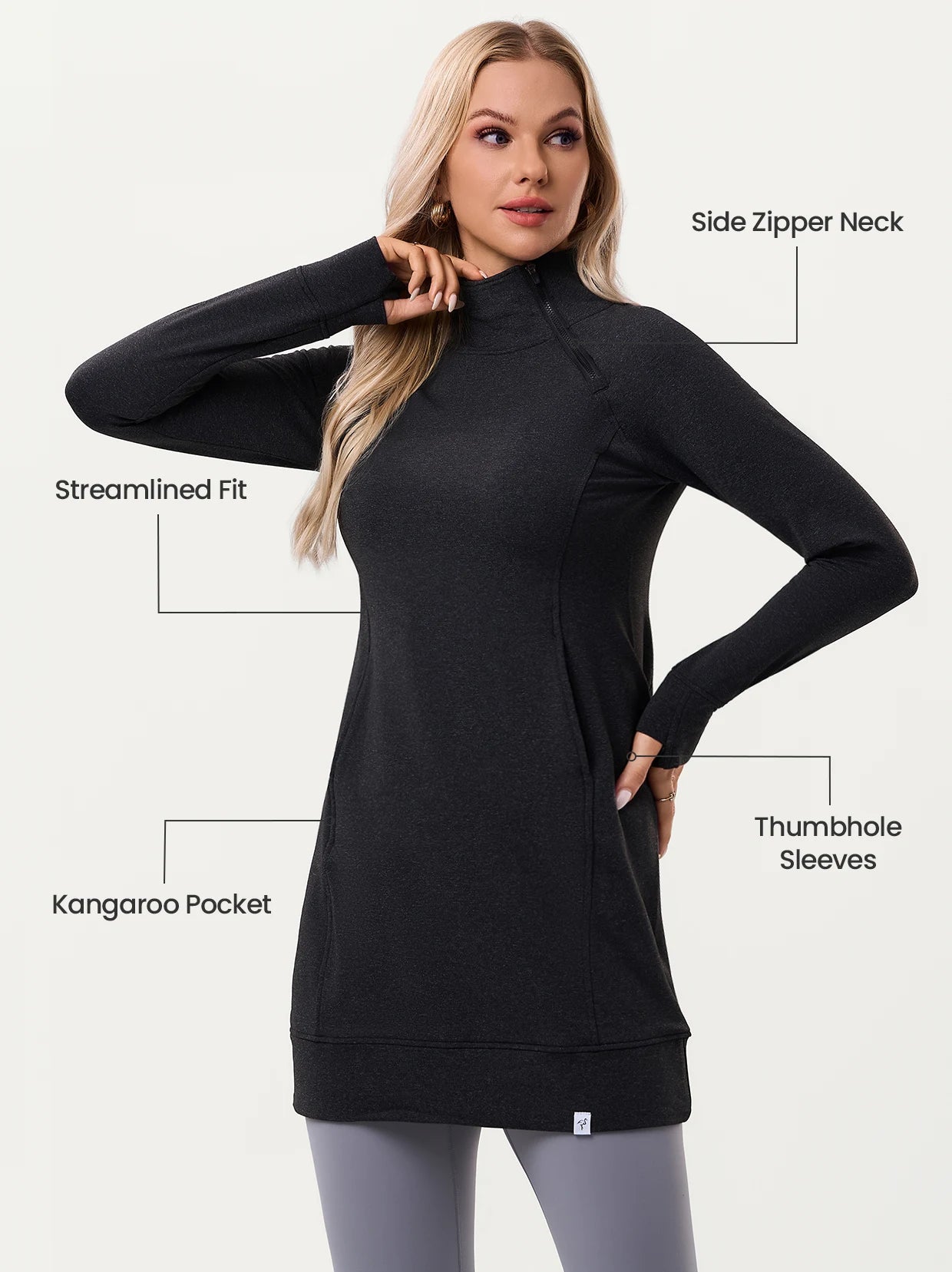 12 reviewsSide-zip 35" Mock Neck Long-sleeve Fleece Dresses