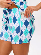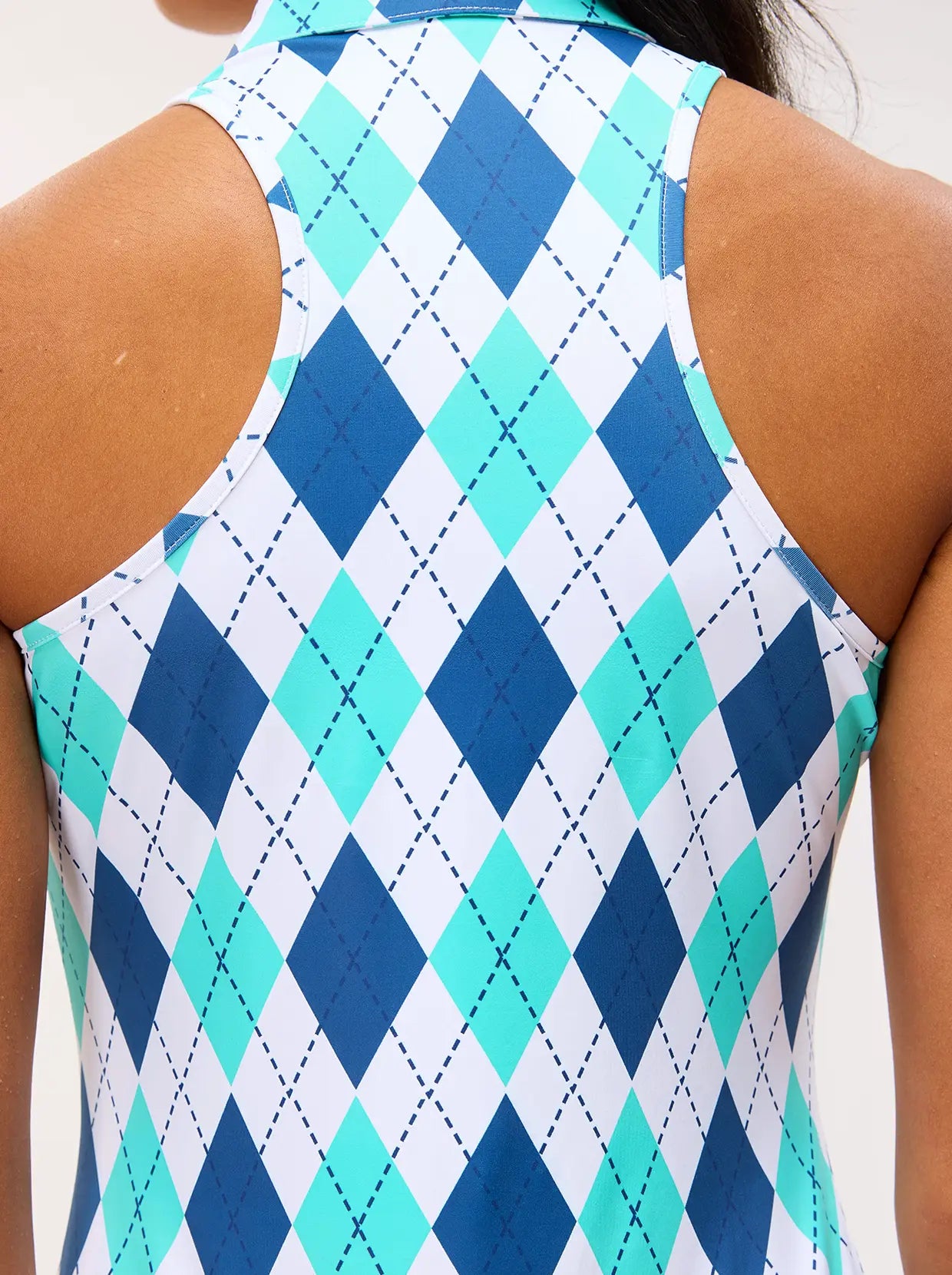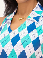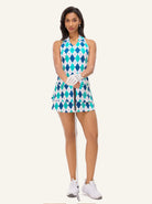 32" Blue and Green Checkerboard V-neck Racerback Sleeveless Dress