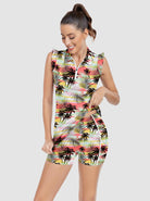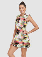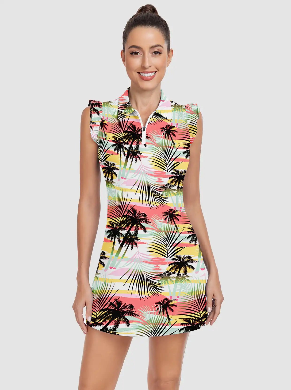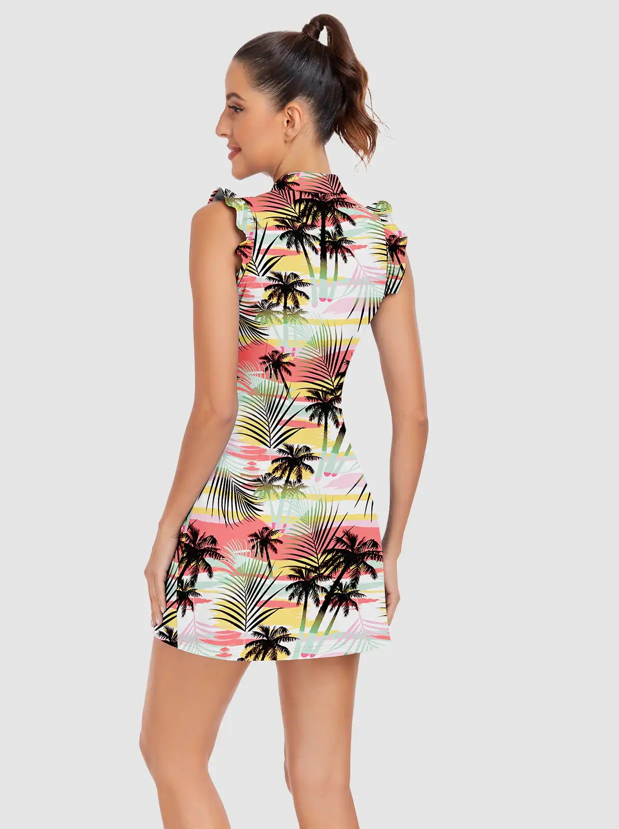 34" Coconut Tree Quarter-zip Ruffled Sleeveless Active Dress
