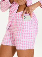 Bye-bye, sweaty arms! Our 34" Houndstooth Quarter-Zip Long-Sleeve Dress features a timeless houndstooth print, offering a sophisticated yet playful look. Made with breathable, soft fabric and 4-way stretch for ultimate comfort. It includes half-mesh sleeves, pockets, and built-in shorts. Perfect for golf, tennis, pickleball, or making an elegant statement in your daily wear.