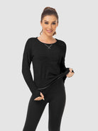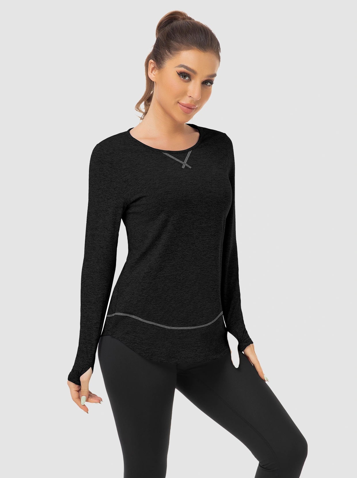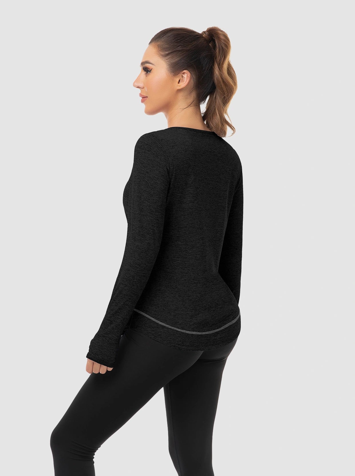 Stay Warm, Stay Active. Our Women's Thermal Top is the perfect blend of comfort and performance. Crafted with soft, quick-drying fabric, it locks in warmth and wicks away moisture. The 4-way stretch and curve hem ensure unrestricted movement, while the thumbhole design keeps your hands cozy. Ideal for your next workout or outdoor adventure.
