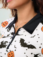 Halloween Witches Print Quarter-zip Long-sleeve Polo Shirt