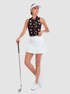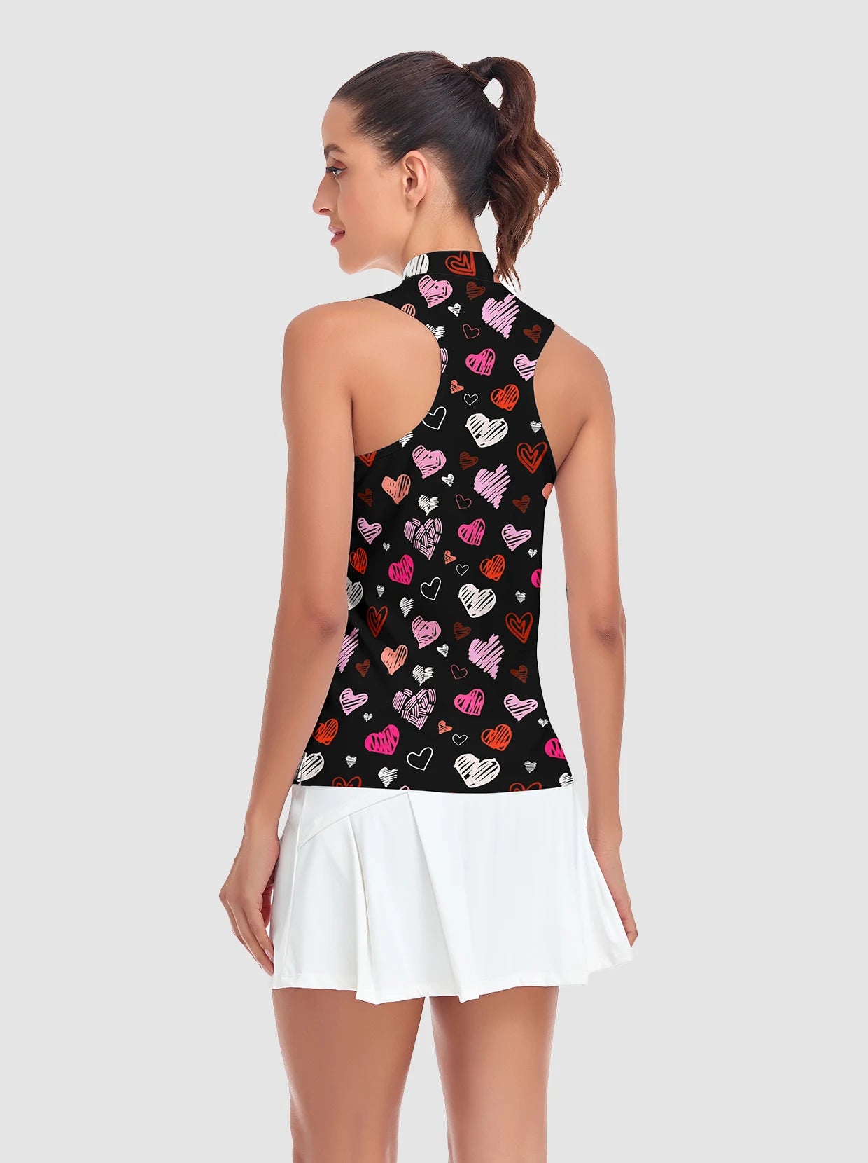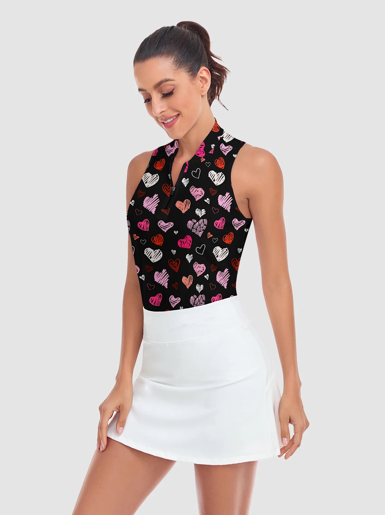 Heart Print Racerback Quarter-zip Sleeveless Shirt