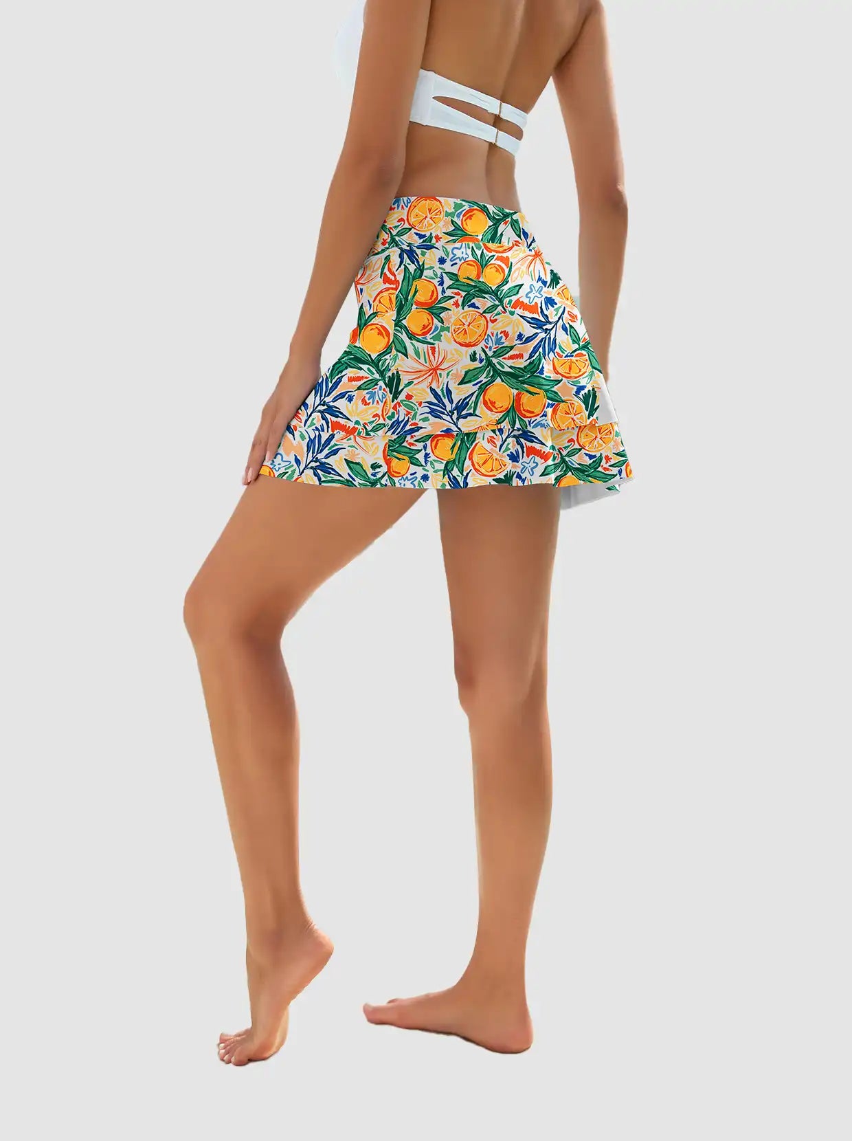 Ladies Fruit Print 15" Double-layer Swim Skort with Shorts
