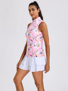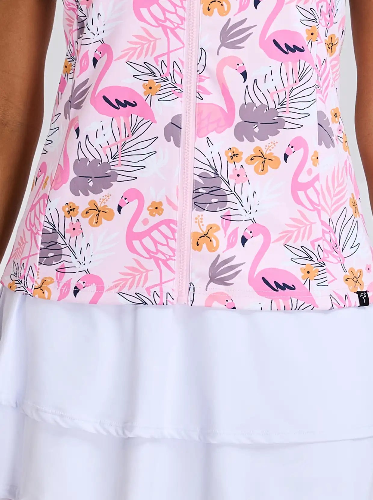 Pink Flamingo Full-Zip Sleeveless Polo Shirt For Women