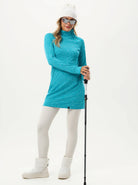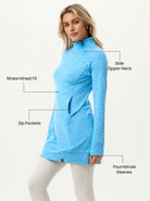Stay comfy and ready for action in our long-sleeve thermal dress! Thumbholes keep your sleeves in place, while the side zipper makes layering a breeze. Moisture-wicking fabric keeps you dry, while also stretching and resisting pilling for lasting wear. With a handy pocket and playful style, it's your go-to for golf, tennis, pickleball, or just hanging out.