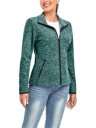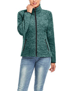 Lake Green Stand-collar Long-sleeve Fleece Jacket For Women