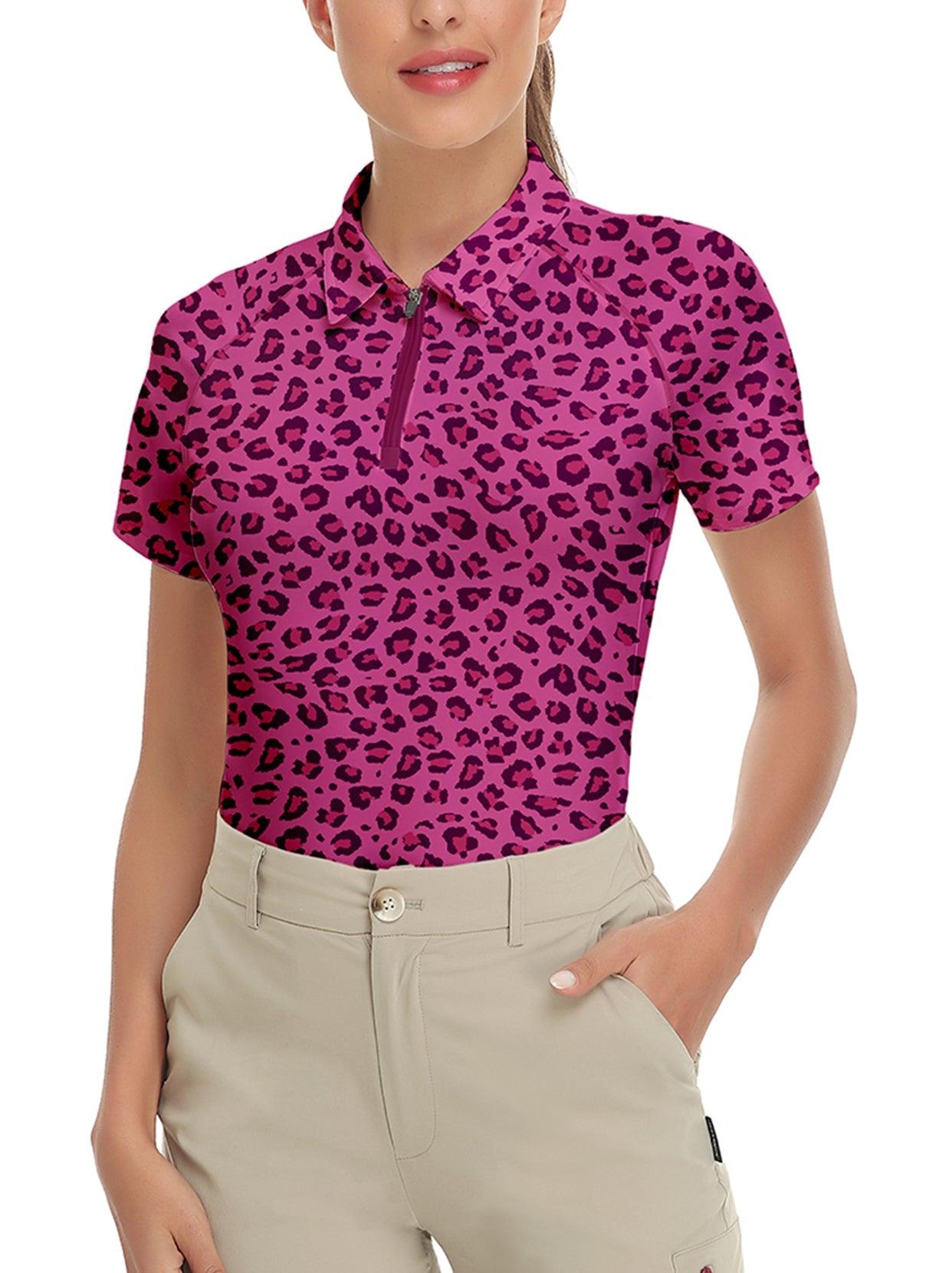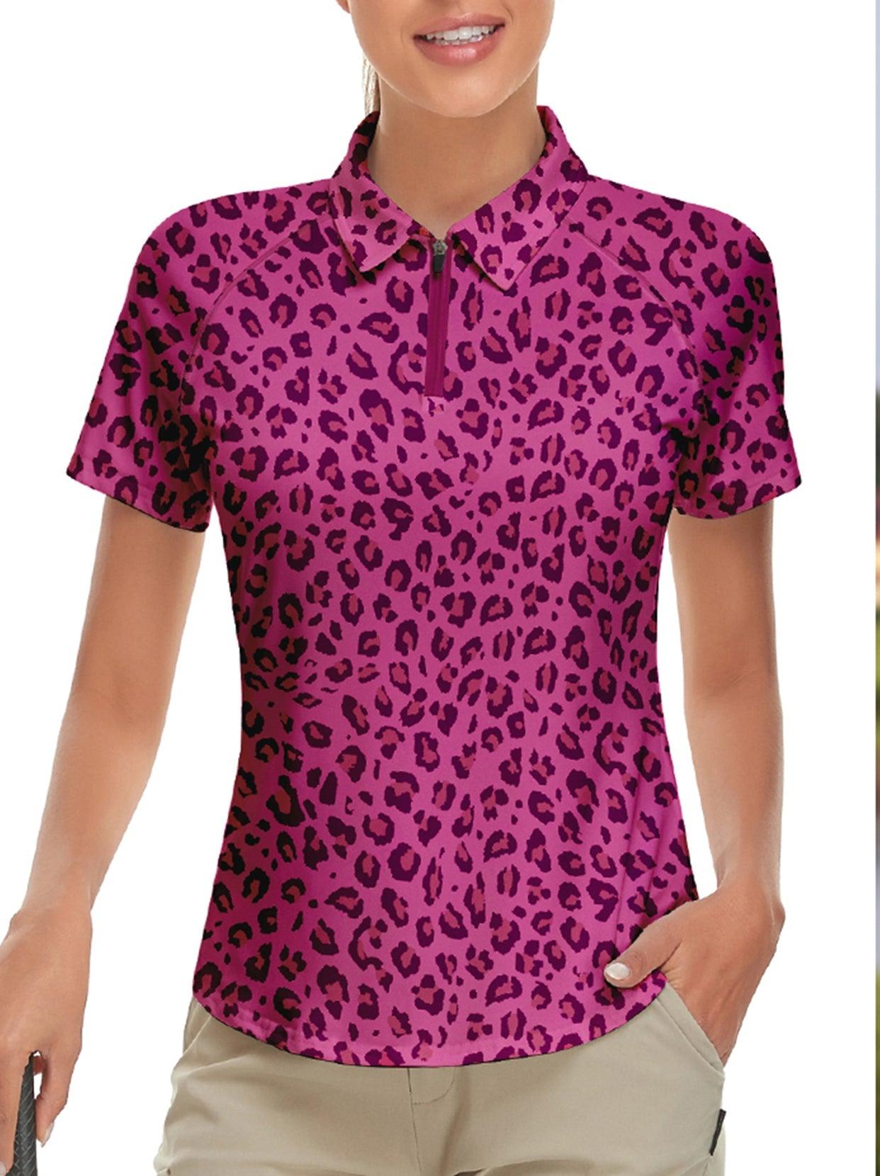 Shop our Ladies' Short Sleeve Golf Polo - Pruple-Leopard Golfer's Moisture Wicking Athletic Golf Lapel Quarter Zipper Polo Shirt Tennis Shirt Dry Fit.