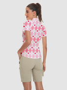 Shop our Ladies' Short Sleeve Golf Polo - Pink Plaid and Red Hearts Golfer's Moisture Wicking Athletic Golf Lapel Quarter Zipper Polo Shirt Tennis Shirt Dry Fit.