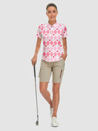 Pink Plaid and Red Hearts Short-sleeve Golf Polo for Women