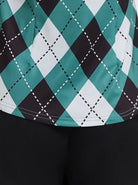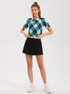 Green and Black Checkerboard Short-sleeve Golf Shirt for Women