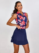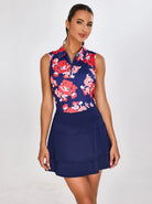 Red Floral Athletic Sleeveless Polo Shirt For Women