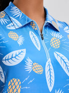 Pineapple Pattern Quarter-zip Sleeveless Polo Shirt
