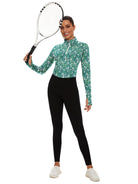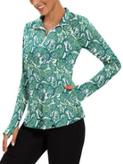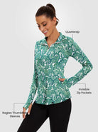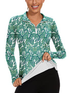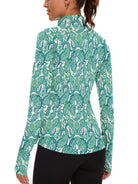 Green Paisley Quarter-zip Long-sleeve Fleece Top for Women