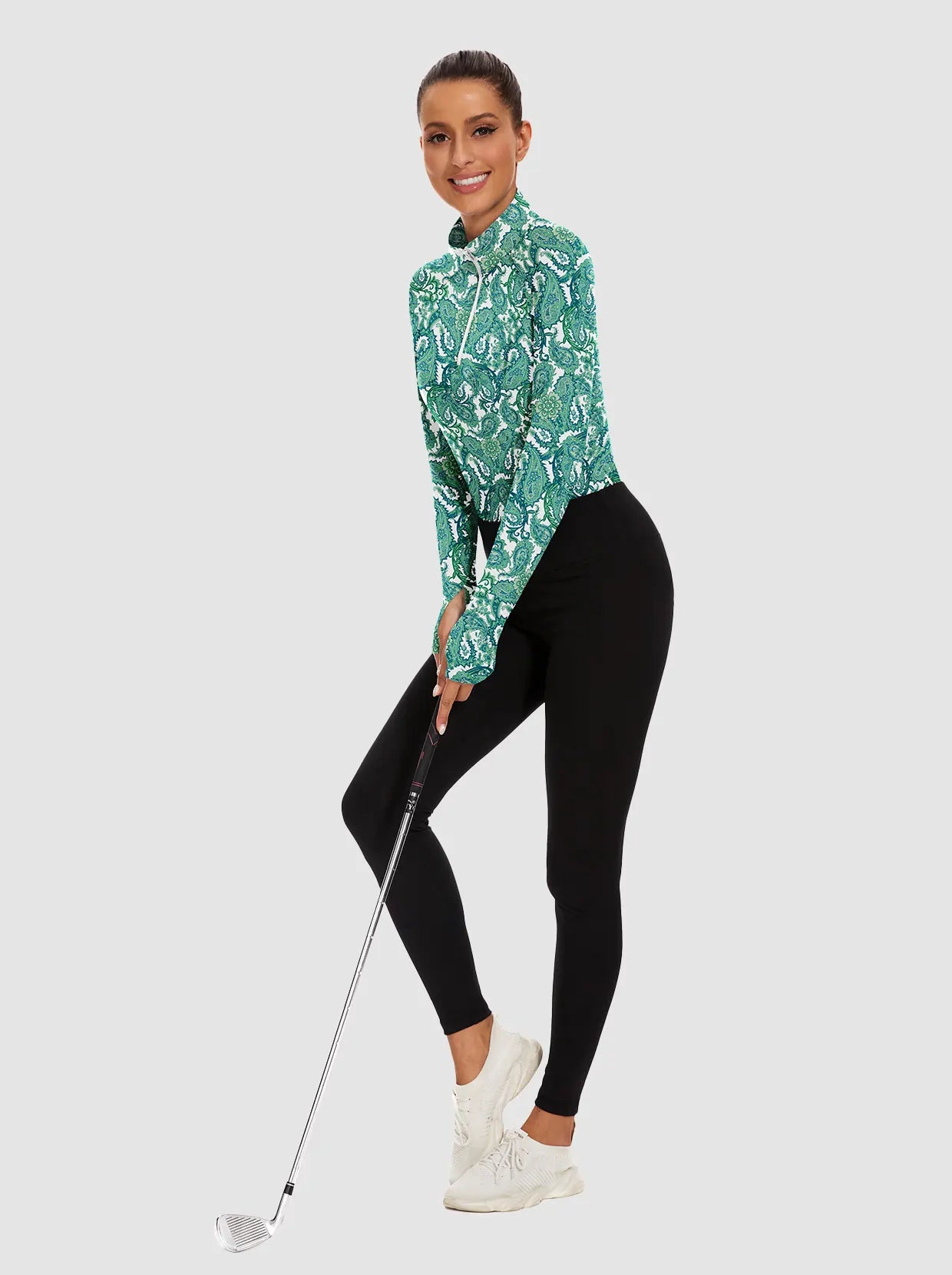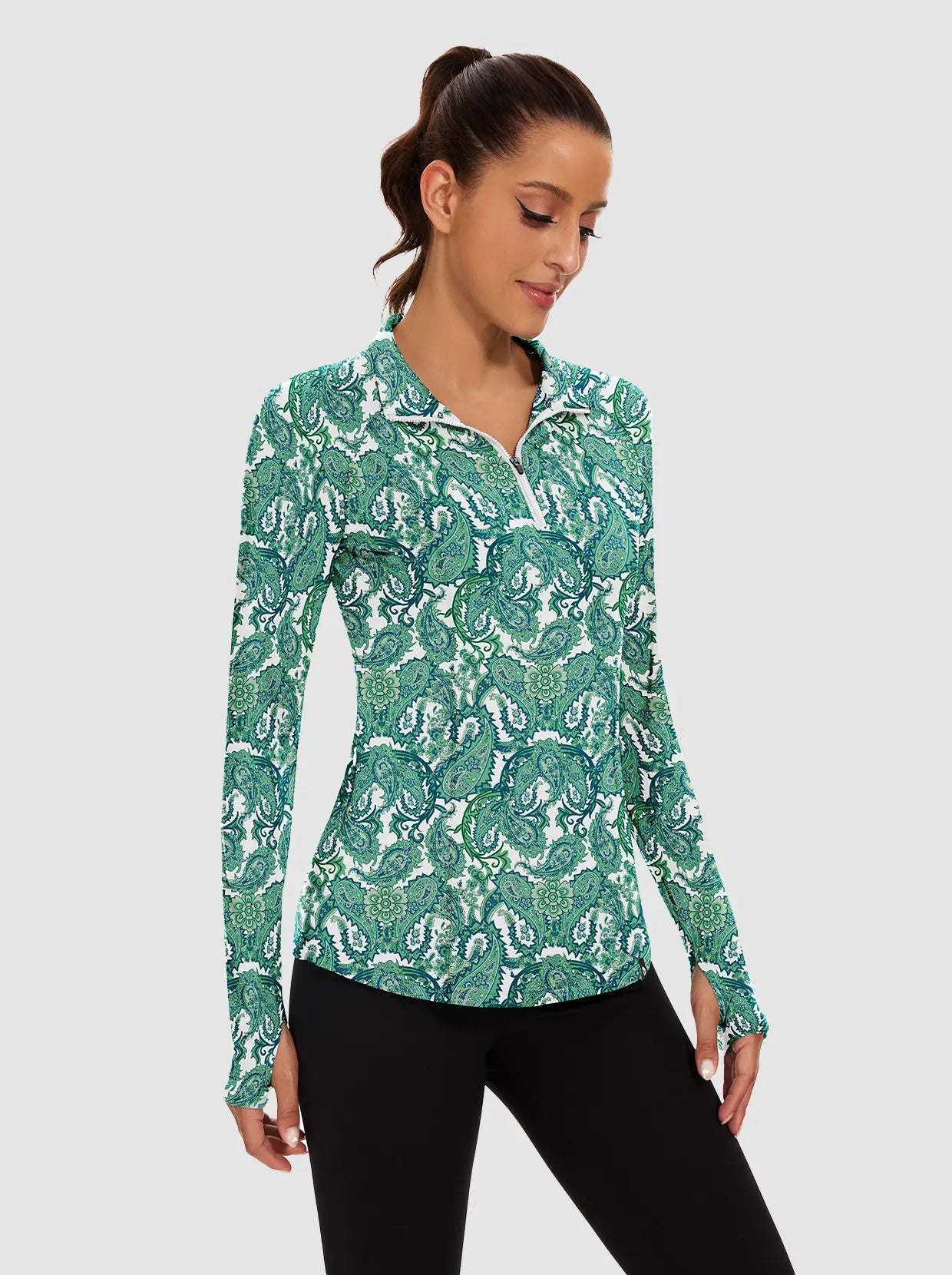 Green Paisley Quarter-zip Long-sleeve Fleece Top