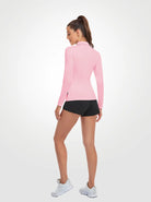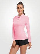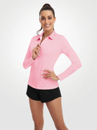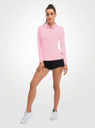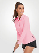 Solid Pink Quarter-zip Long-sleeve Polo Shirt for Women
