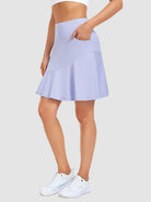 Solid 19" Pleated Tennis Skort with Back Zipper Pocket