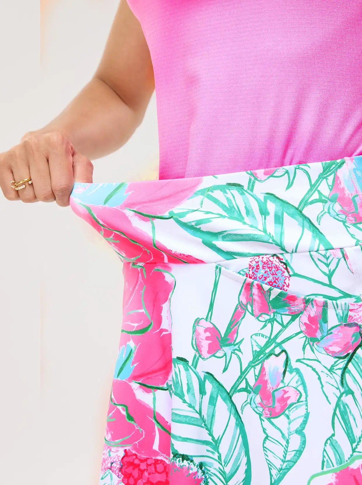 17" Pink Floral High-Rise Active Skorts with Shorts and Pockets