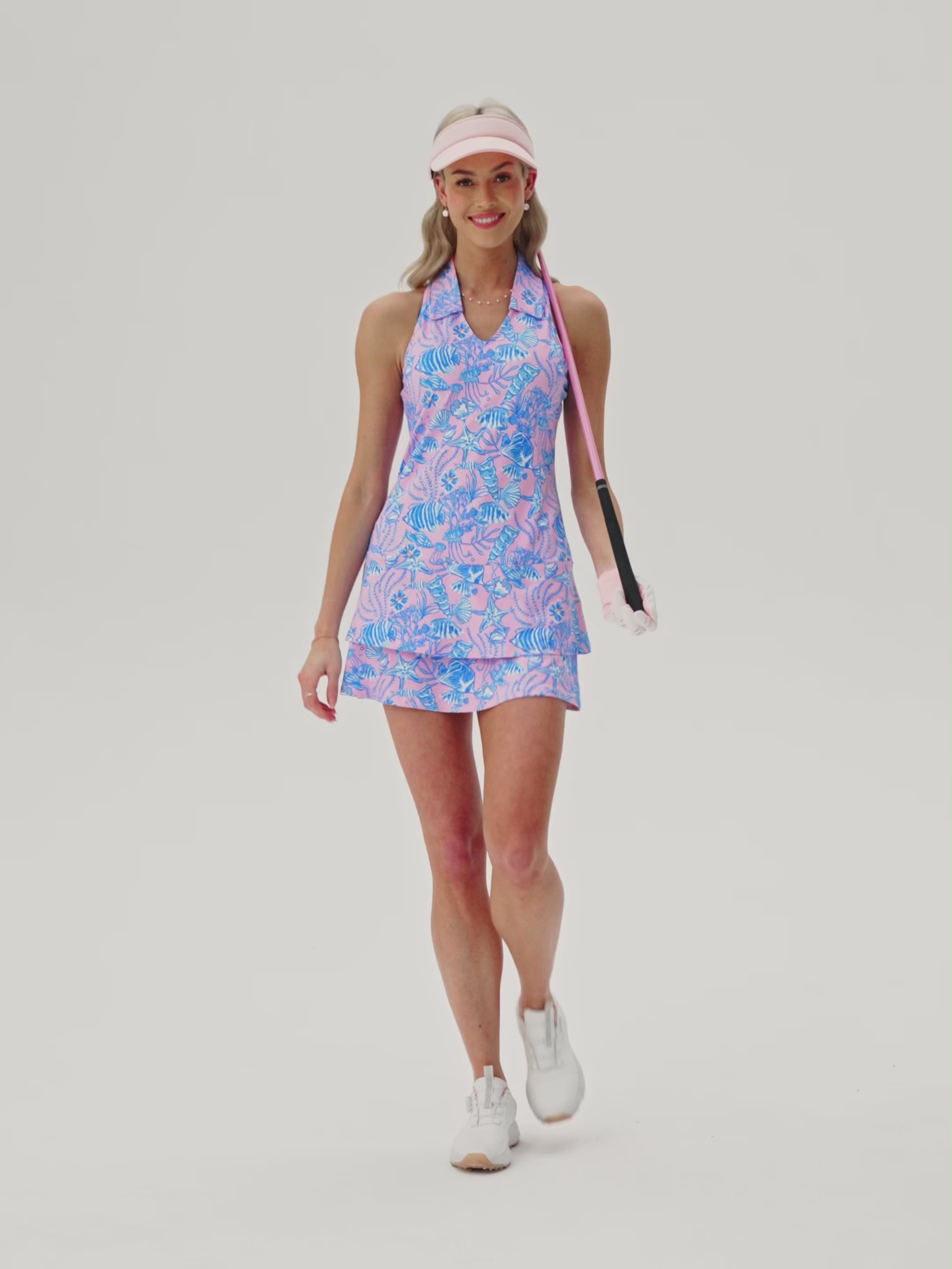 32" Tropical Marine Racerback V-neck Polo Dress with Shorts