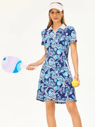 36" Stretchy Short-sleeve Polo Dress with Shorts and Pockets