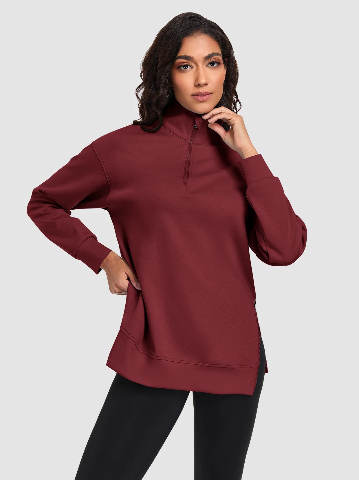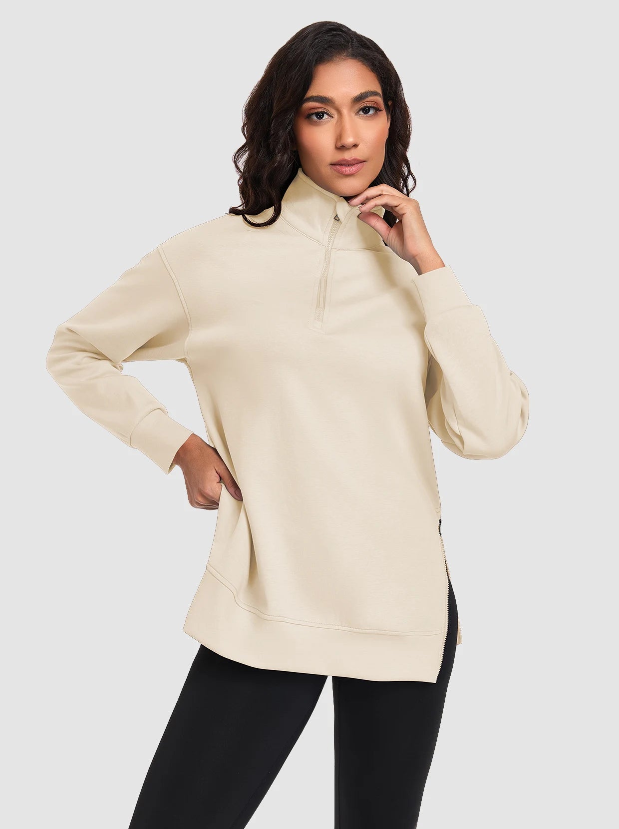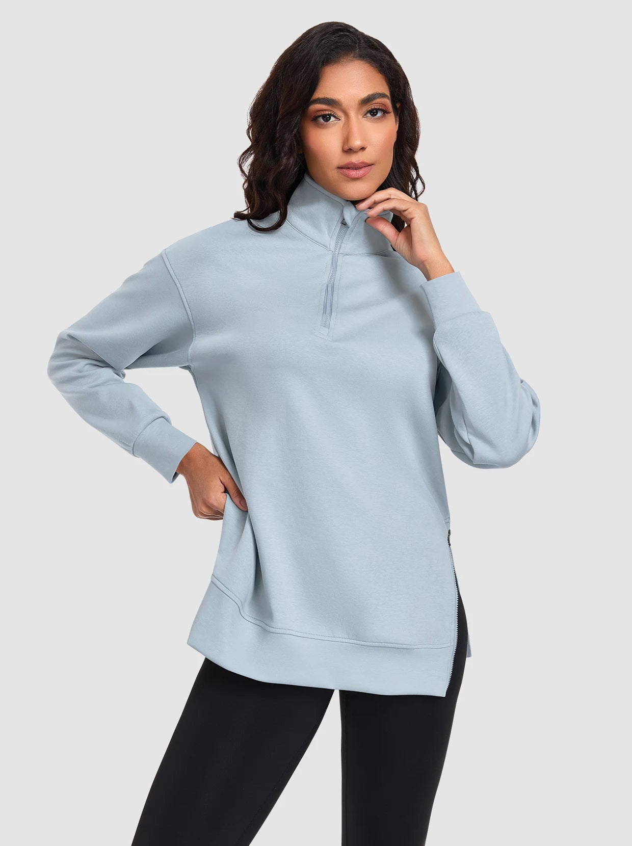 Basic Stand-collar Tunic Sweatshirts with Side-zip Hem