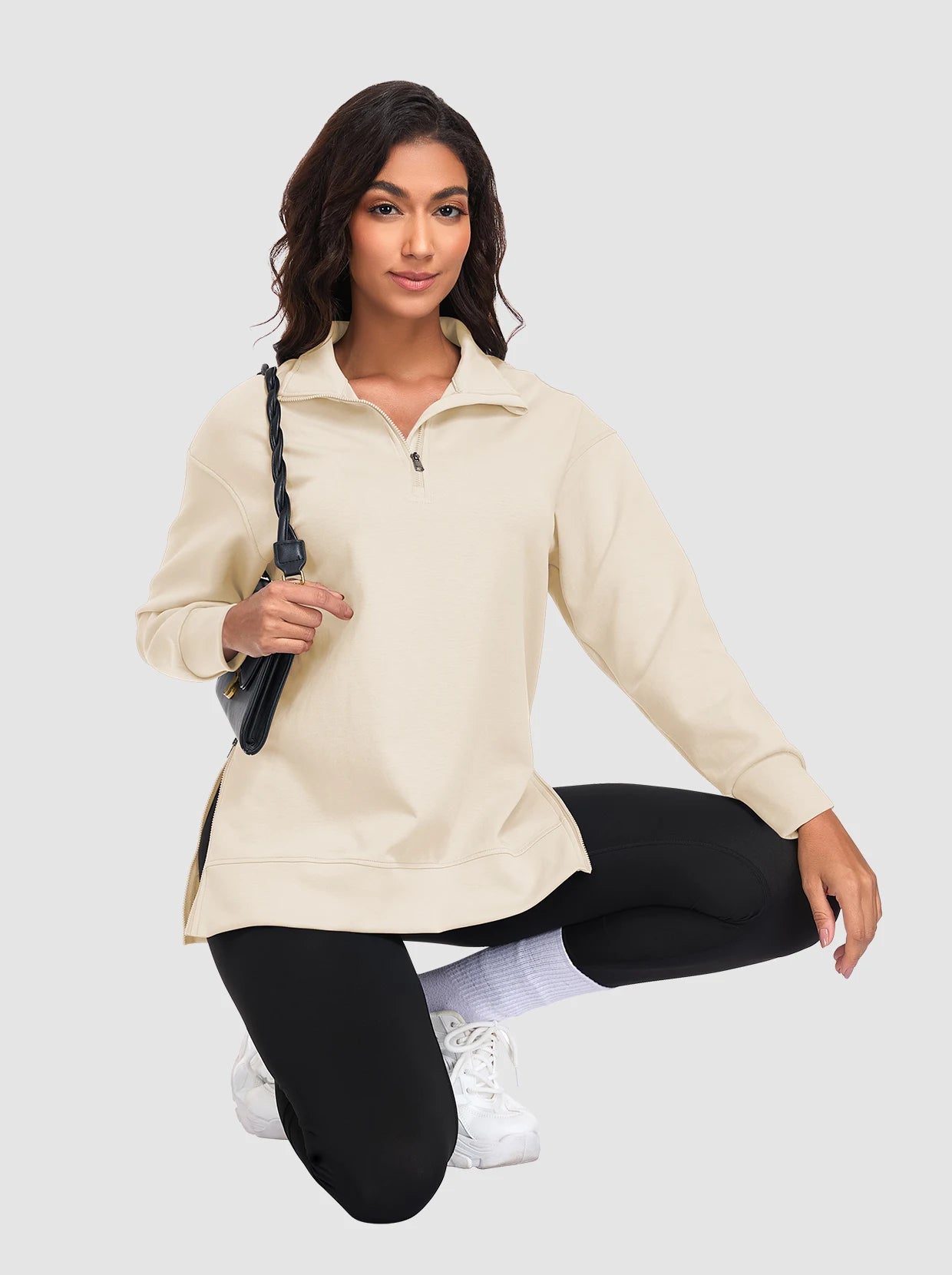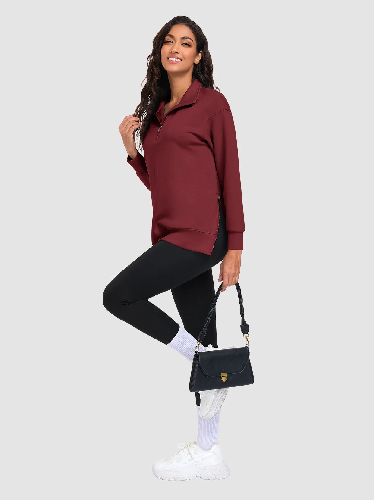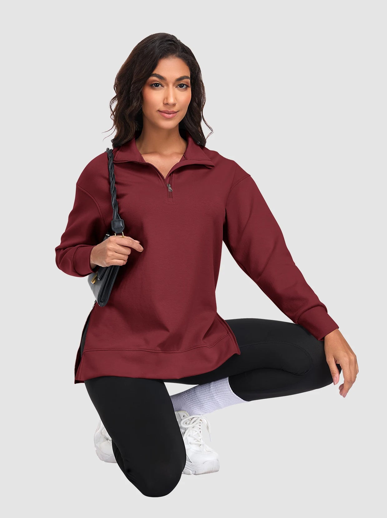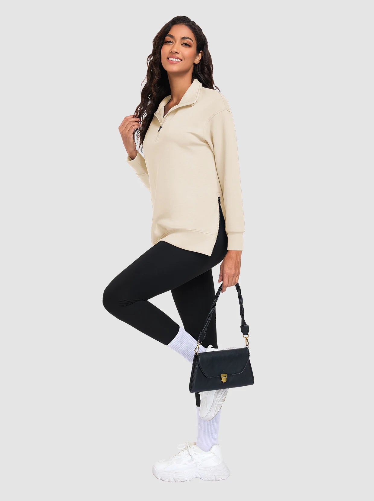 Basic Stand-collar Tunic Sweatshirts with Side-zip Hem