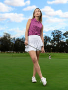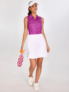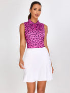 Violet Leopard Print Sleeveless Zipper Golf Top