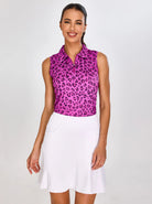 Show off your fierce style on the golf course with our Violet Leopard Print Sleeveless Quarter-Zip Golf Top for Women. This bold and edgy design lets you stay cool and confident with its sleeveless fit and sleek quarter-zip neckline. Make a statement every time you tee off!